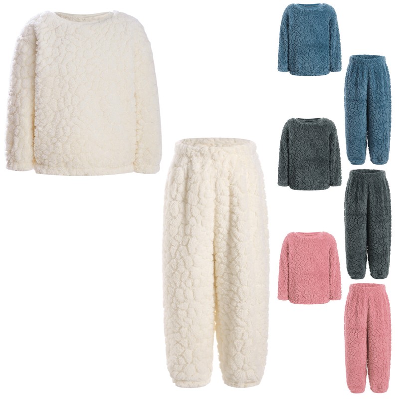 Kids Sleepwear Thicken Set Warm Pajamas Sleeping Sleepsuit Fleece 2pcs CasualUSD 9.39