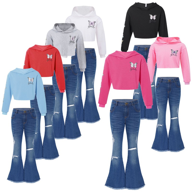 Kids Girls Tracksuits Bell-bottom Cropped Sweatshirt Outfits Zipper SweatsuitsUSD 19.79