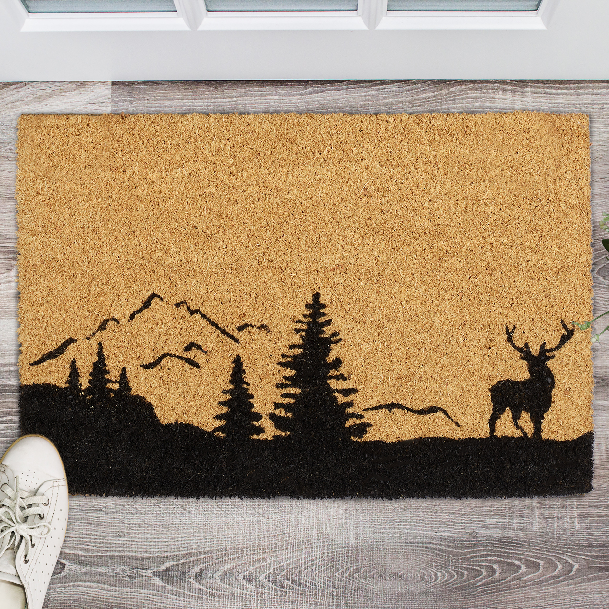 - Für Naturliebhaber: Fußmatte für den Eingangsbereich - Mit Hirsch, Bergpanorma und Bäumen verziert