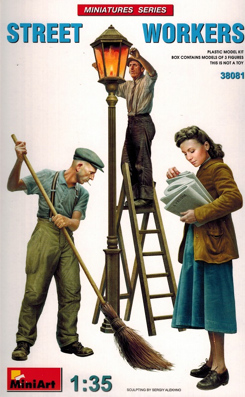 MiniArt 38081 Street Workers - 1:35 Einzelteile für 3 Figuren Kunststoff - Modellbausatz aus mehreren Teilen Empfohlen für Modellbauer und Sammler ab 14 Jahren. Klebstoff und Farbe nicht enthalten, diese sind zur Fertigstellung gemäß Abbildung erforderlich. Warnhinweis: Nicht für Kinder unter 3 Jahren geeignet. Aufgrund maßstabs- und vorbildgerechter bzw. funktionsbedingter Gestaltung sind Spitzen,Kanten und Kleinteile vorhanden. | ||||