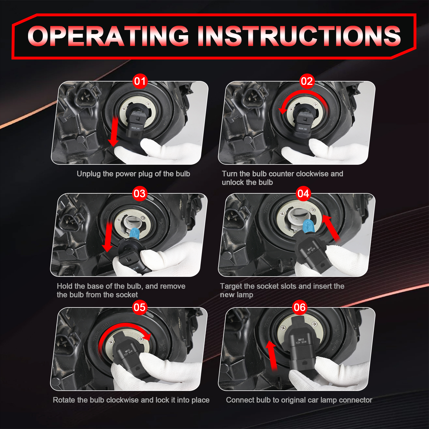 Please wear gloves when installing the halogen bulb and do not touch the glass surface of the halogen lamp directly with your hands! Moisture from your hands that is transferred to the bulbs will reduce the life span and quality of the output of the bulbs. NOTE: This kit is for vehicles with Factory Halogen Systems, it will not work with vehicles with Factory HID.Pls confirm the item if it can matches your car before you purchase. Compatible list can not show up all car model,it is only for reference. It may exist someting error for some car model because of the car upgradtion and car modification.So please make 100% sure before you purchase.Otherwise, we are not responsibe for this, thanks for your cooperations! Specifications: • Bulb Socket: 9012 HIR2 • Color Temperature: 4200K • Voltage(V): DC12V • Wattage: 55 W • Working temperature: -40℃~+80℃ • Beam Angle: 360° • Waterproof Level: IP65 • Material: Aviation Aluminium • Super Long Service Life: ≥800 Hours • Warranty: 1 Years • Canbus Error Free: No. For most vehicles, just directly plug and play. Yet for some vehicles with CAN-BUS system, it may require install decoder or load resistor to avoid hyper flash or fast blinking. • Please Note: Please check your car manual or original bulb to confirm the bulb size, length is correct or not before purchasing to save your time. Package Included: