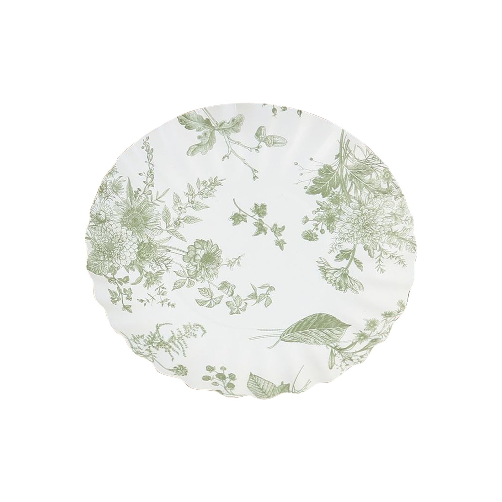 100 White Sage Green Mini Paper Plates with Scalloped Rim French Toile Design