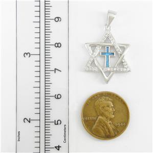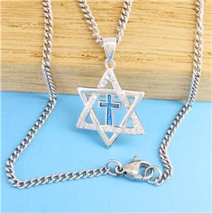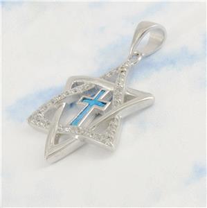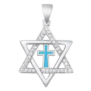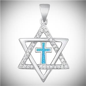 Our new "Sparkling Star of David & Cross Pendant" is a six-pointed star with a synthetic Opal-inlayed Cross at the center. The Star of David is ringed with 32 round CZ gemstones to make it sparkle like the stars in the sky!