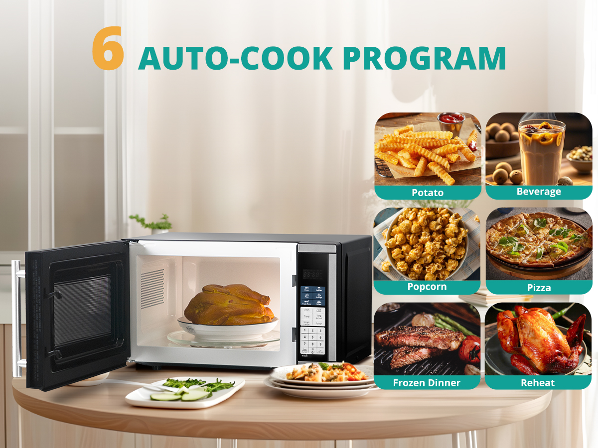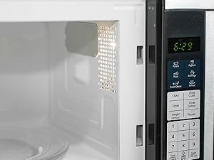 This model features a removable glass turntable for easy cleaning and even cooking. The elegant finish is available in classic black to match your kitchen decor.