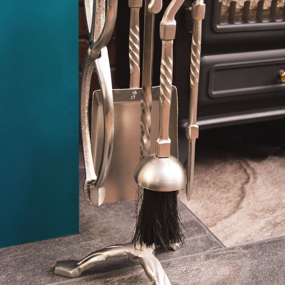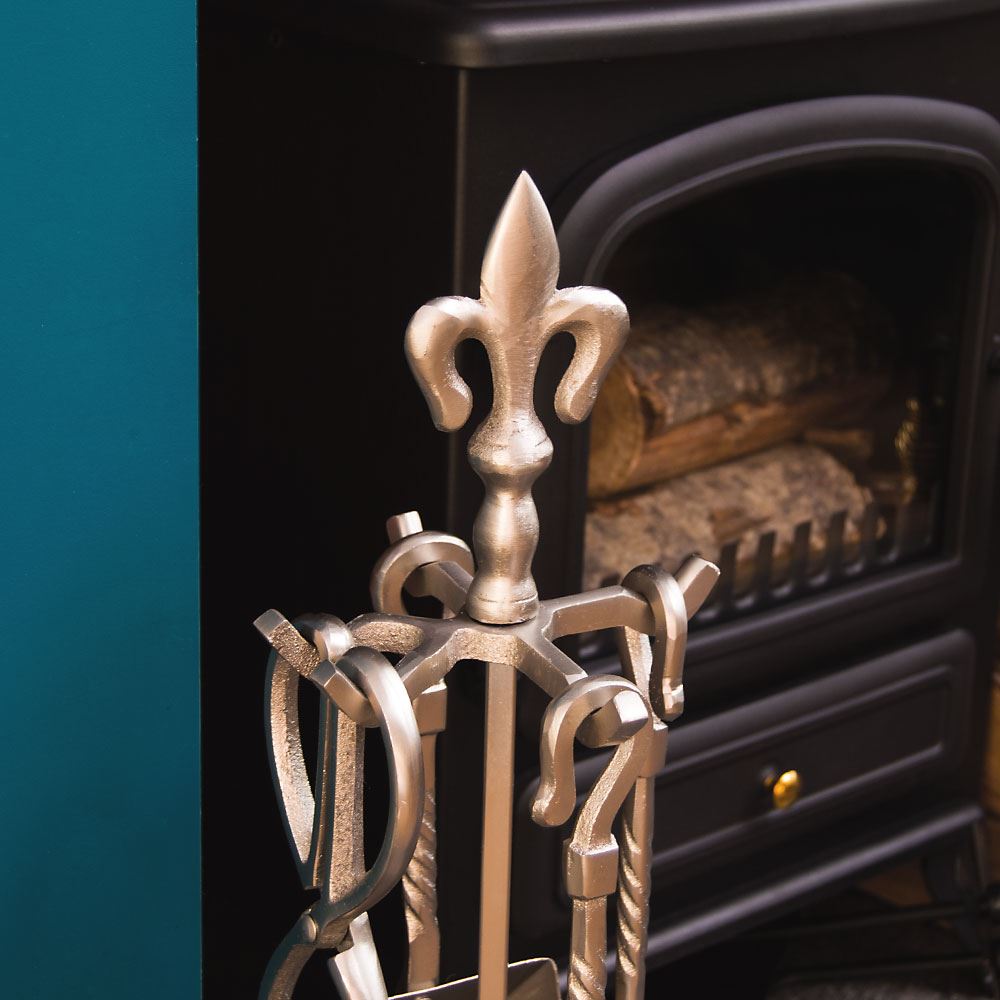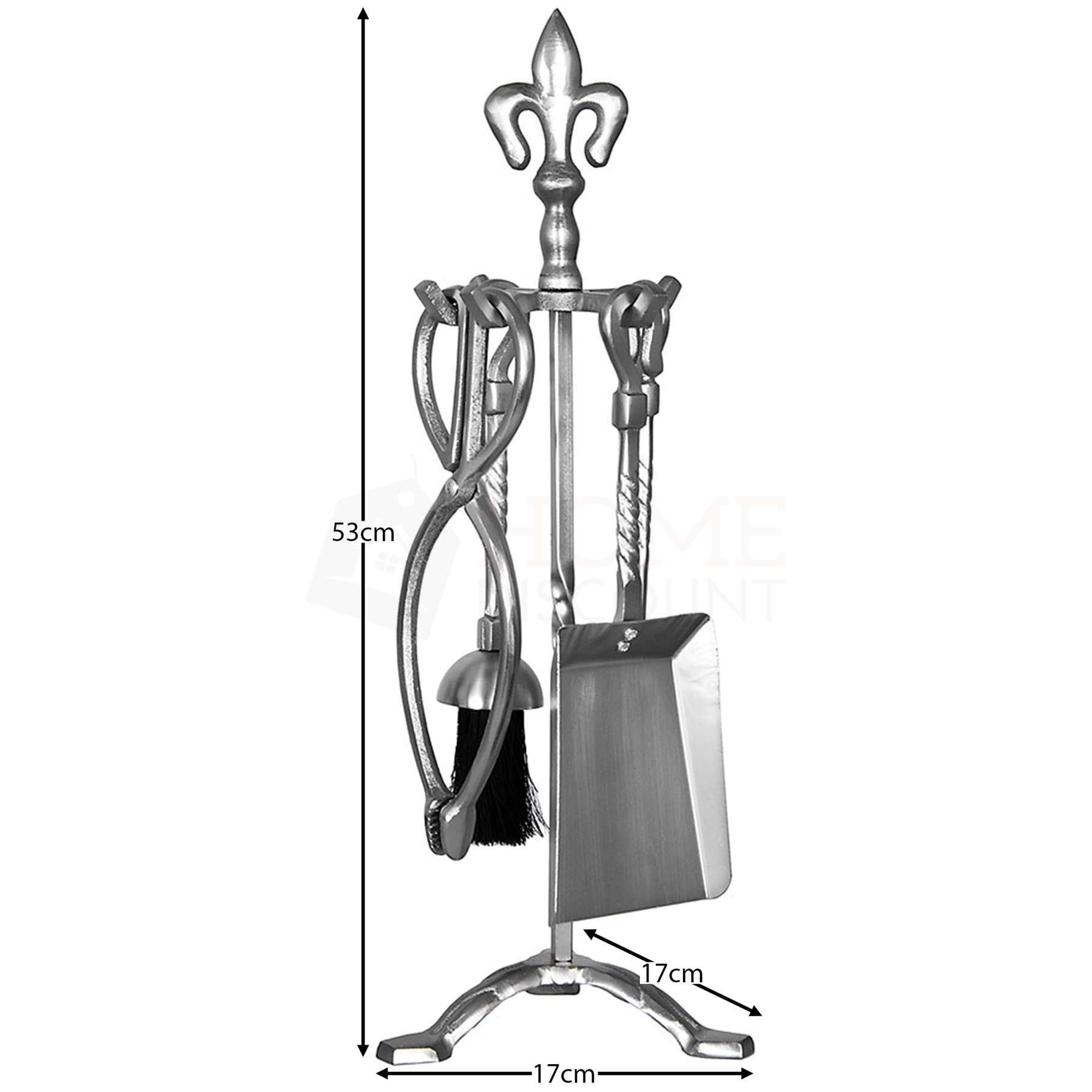 Home Discount offers this stunning new product with a modern stylish design, the 5 Piece Fleur De Lys Companion Set, Pewter. As all durable tools this set is made of cast iron, so you won`t have to worry about every movement you make with these fireplace tools. They are made to last! Thanks to a beautifully crafted design this companion set can be used even as an accessory to an unused fireplace, boosting it`s classic look and bringing a touch of elegance to the room. Handles enhance this set in a very attractive manner, adding a touch of luxury and class. Set consists of shovel with brush to quickly get rid of any mess and a poker with tongs to manage your solid fuel in a fireplace, and do not forget about gorgeous stand that comes along!