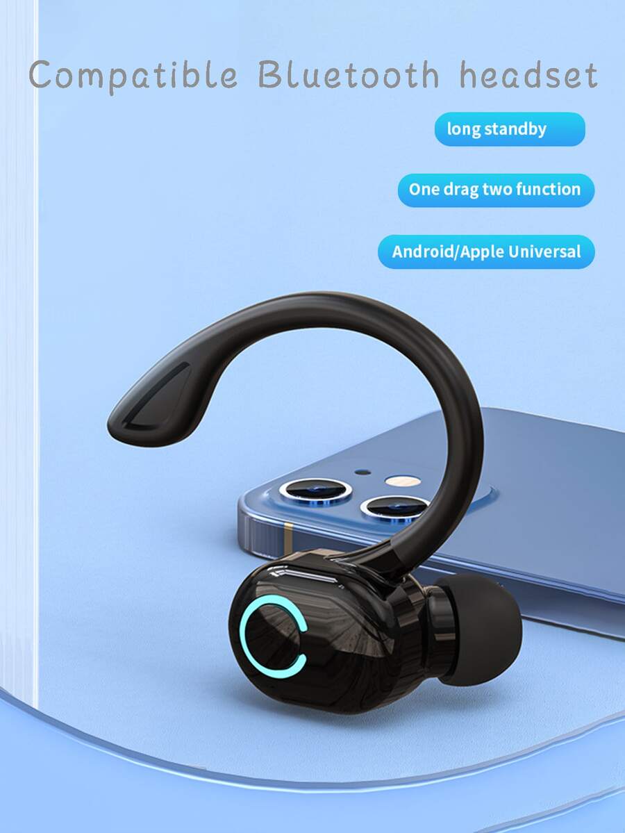 Single-ear in ear bluetooth headphone. For wireless music and phone calls. Black one drag two function. Android/Apple universal. New in package.