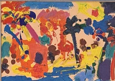 Didier Spindler Signed Abstract Acrylic Painting Framed and Matted Caribbean Art