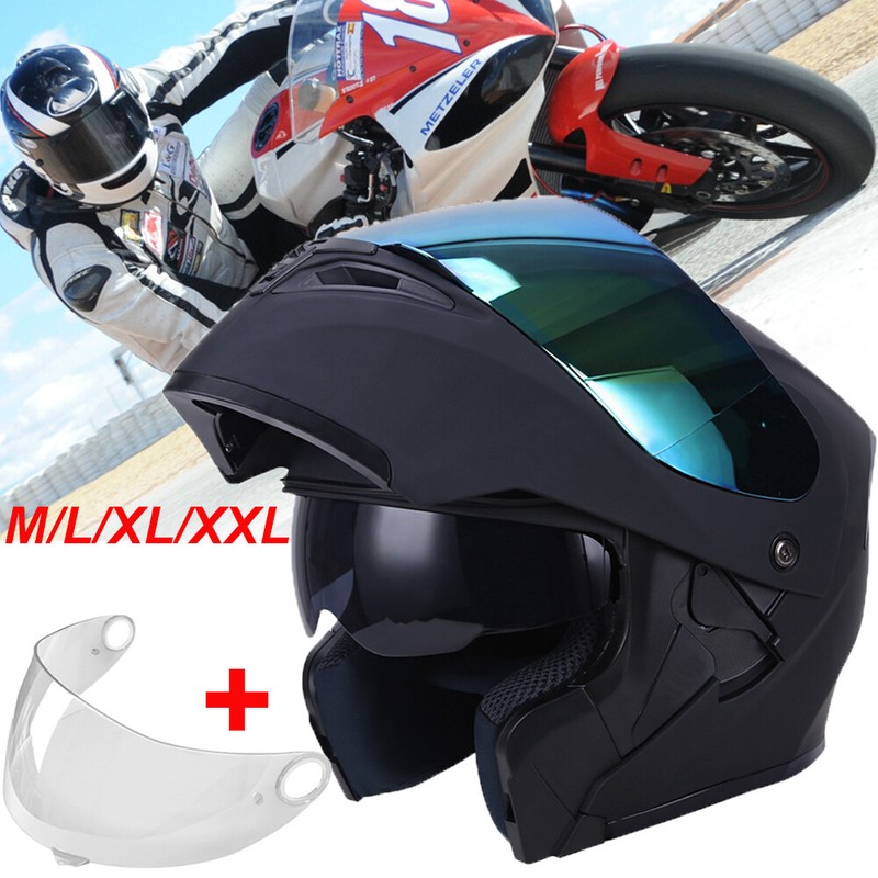 Double visors design- front wide visual field clear visor and inner dark visor