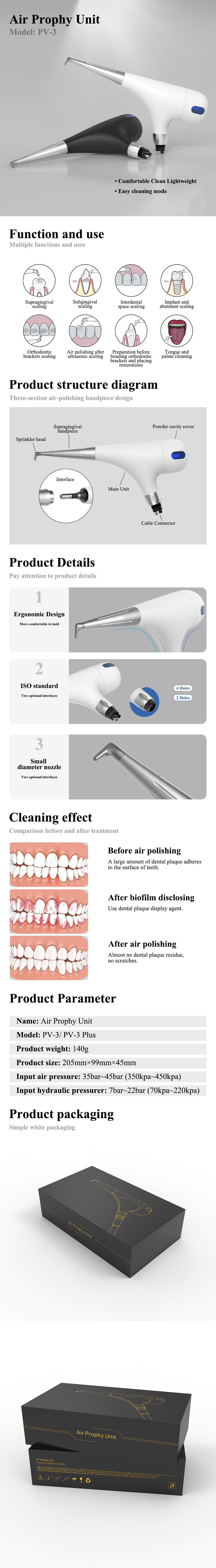 VV Dental PV-3 Air Polisher Abrasion Microetcher Sandblasting Sandblaster Teeth Polishing Air Prophy 2/4Holes