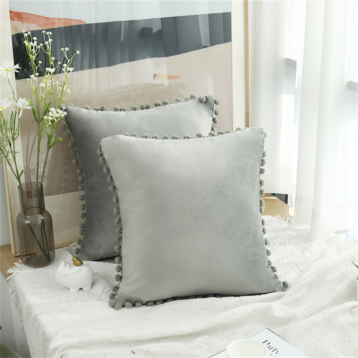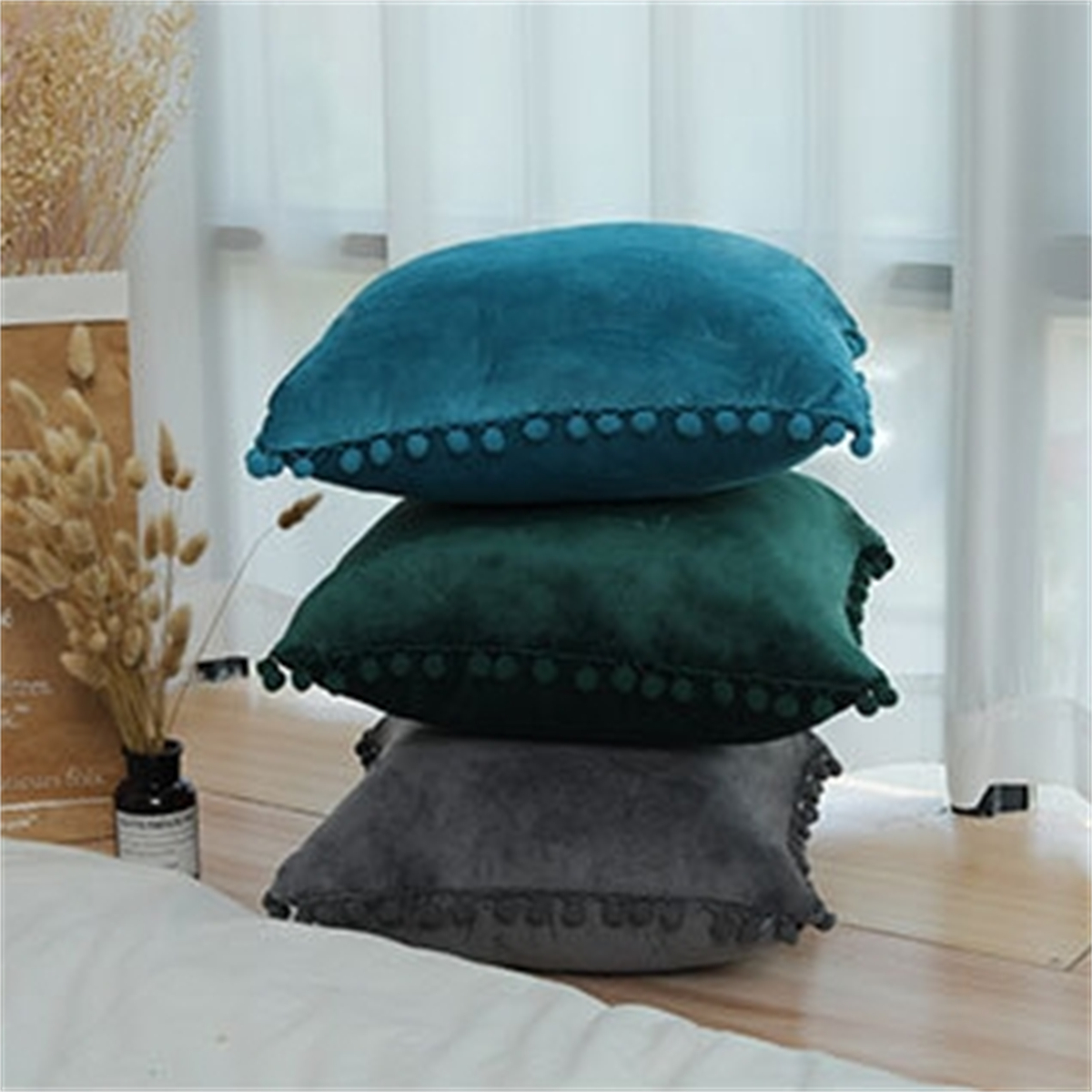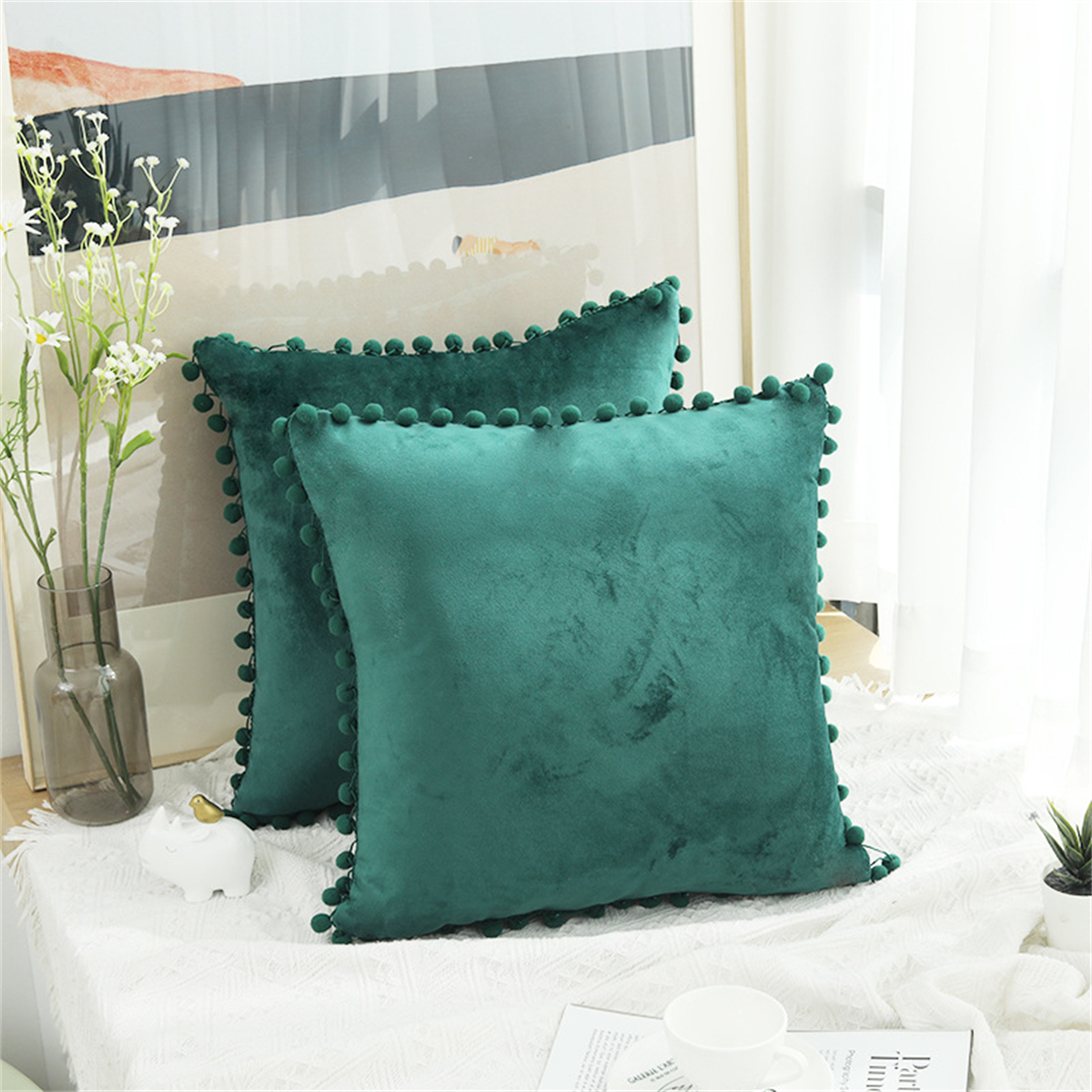 Pom Pom Velvet Cushion Covers Soft Throw Pillow Cases Sofa Car Bed Home Decor
