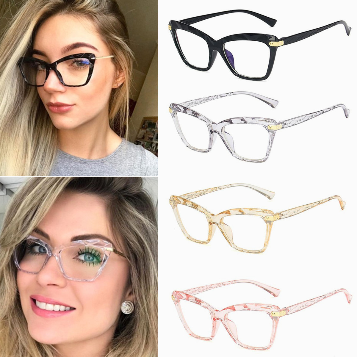 Cat Eye Clear Glasses Frames Women Crystal Eyeglasses Anti-blue Computer Eyewear