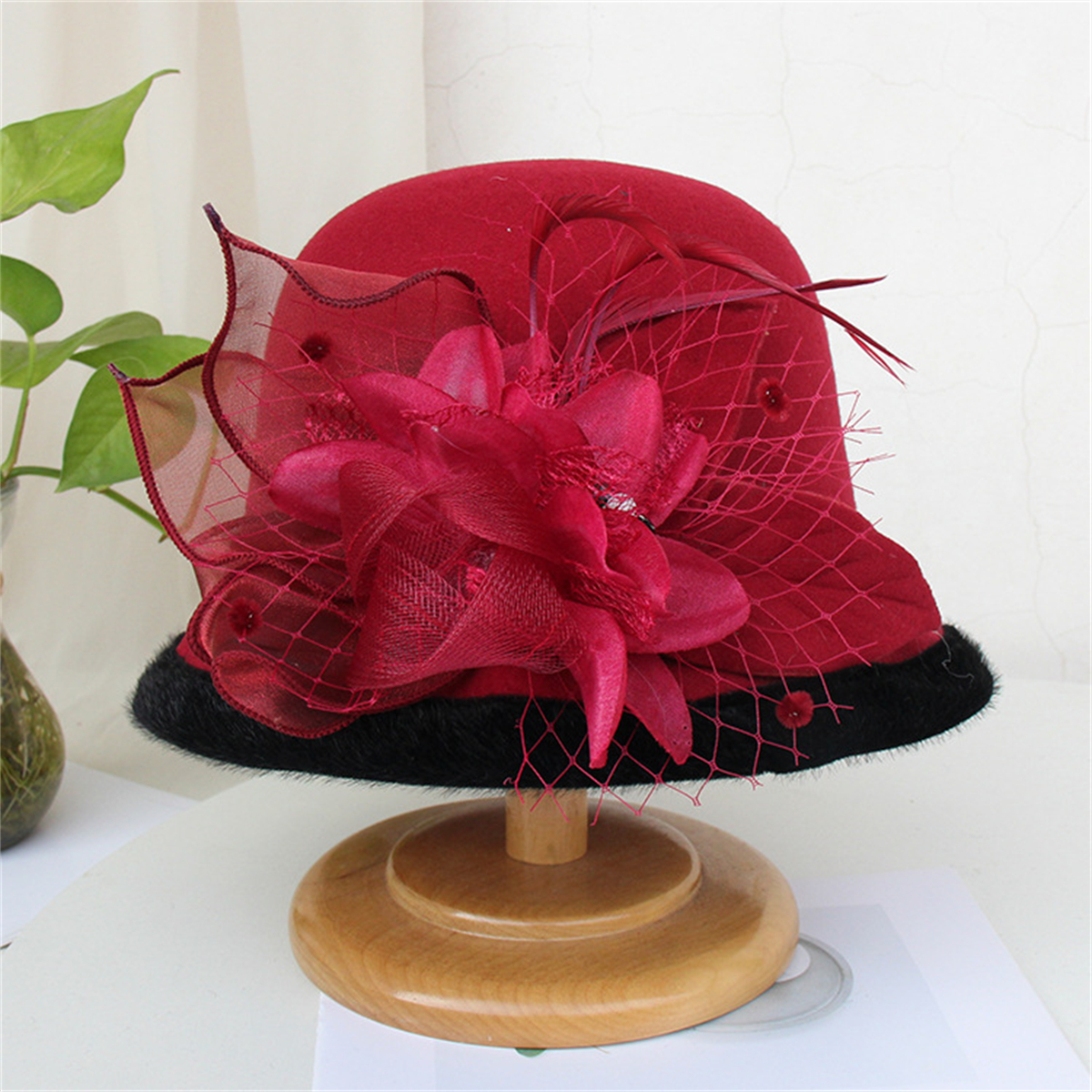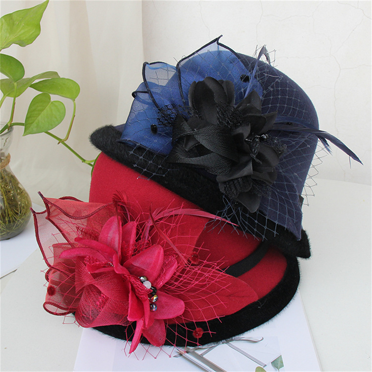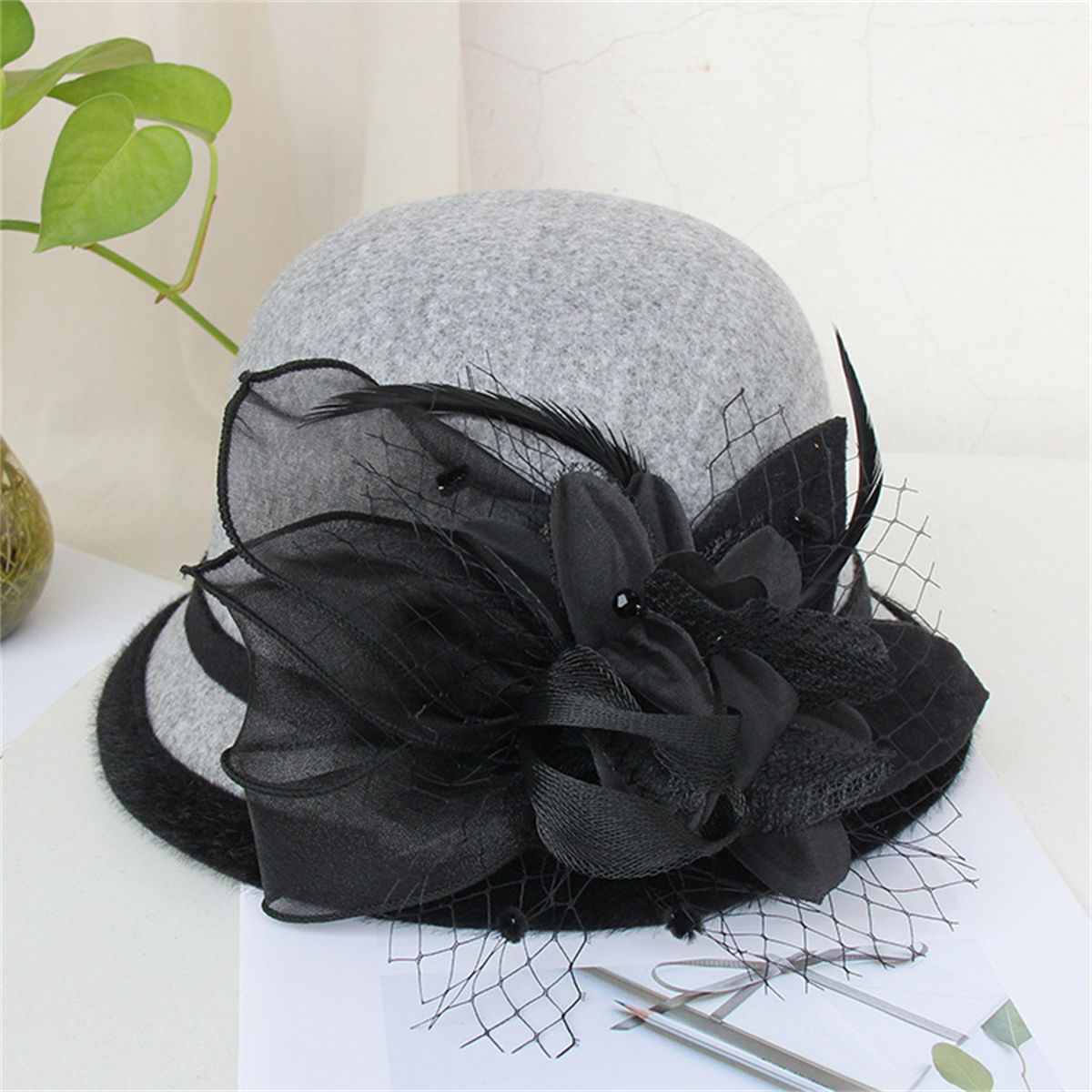 Women Vintage Winter Wool Felt Bucket Cap Retro Elegant Church Bowler Cloche Hat