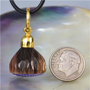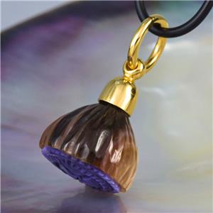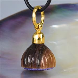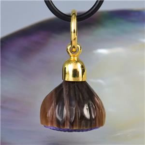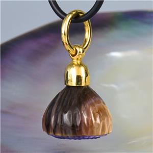 GUM TREE FLOWER PENDANT CARVED NATURAL MULTICOLOR SHELL & GOLD VERMEIL over STERLING SILVER