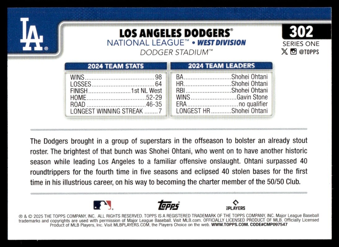 | SHOHEI OHTANI MOOKIE BETTS 2025 Topps Series 1 Team Card #302 Los Angeles |