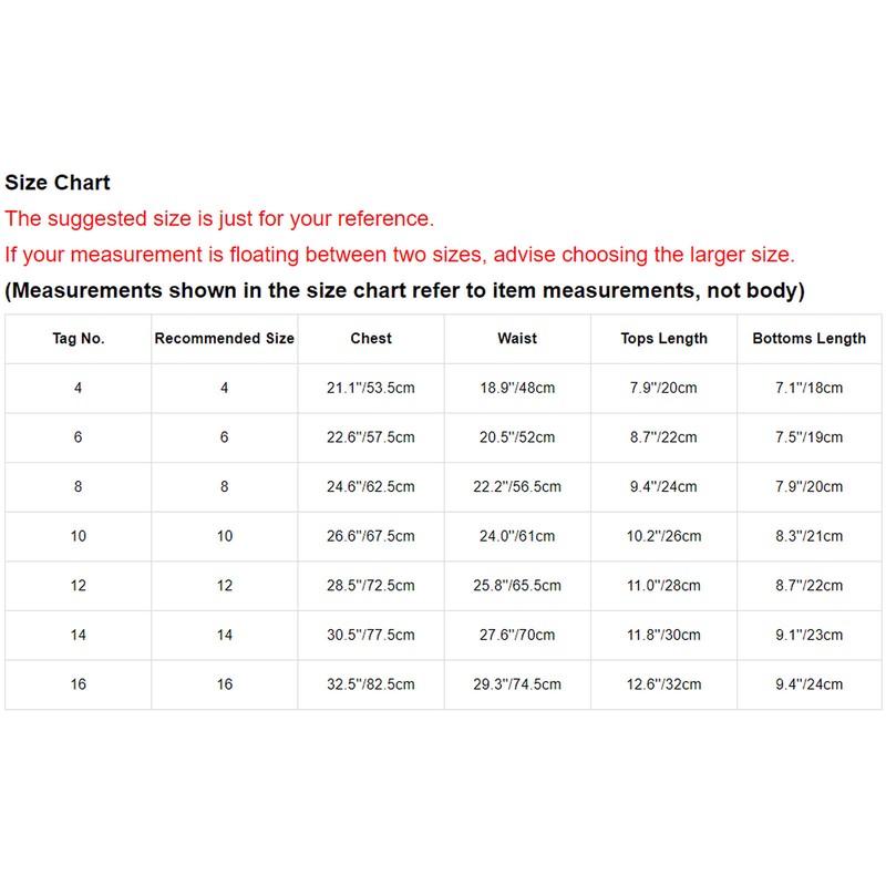 | Etikett Nr. | Empfohlene Größe | Brustumfang | Tops Length | Shorts Waist | Hüftenumfang | Shorts Length | Briefs Waist |