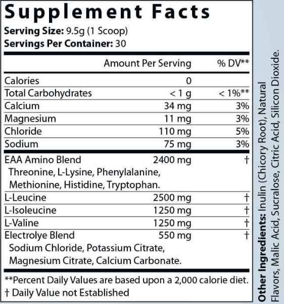 Pro Fuel EAA + BCAA contains 7400 mg of Essential Amino Acids (EAAs). Electrolytes have been added to help maintain full hydration. All this comes with no artificial colors or flavors.