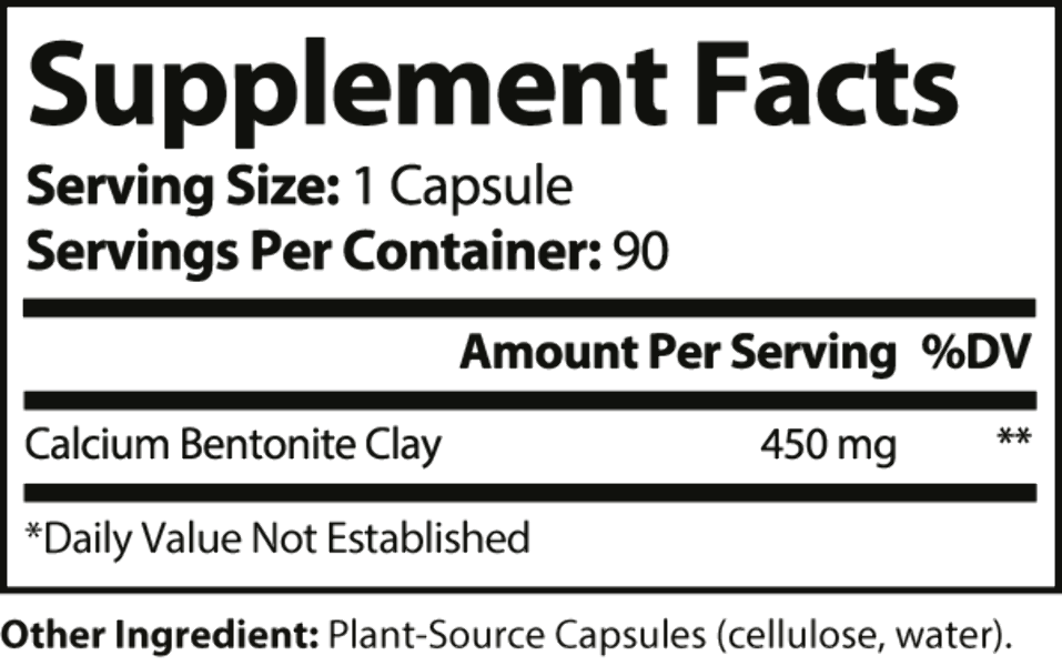Calcium Benonite Clay (450 mg) - A natural detoxifying clay known for its ability to absorb toxins, support skin health, and promote digestive wellness.