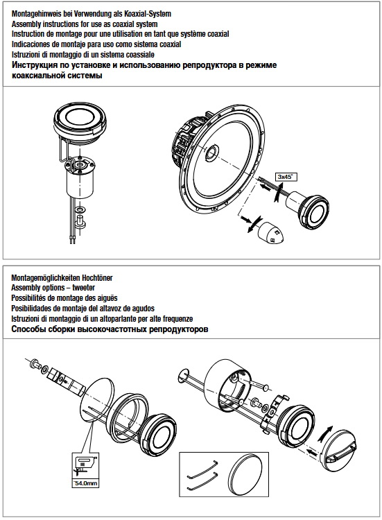 - Separate and coaxial installation of the tweeter