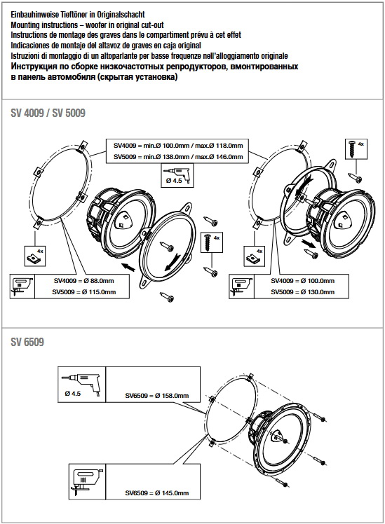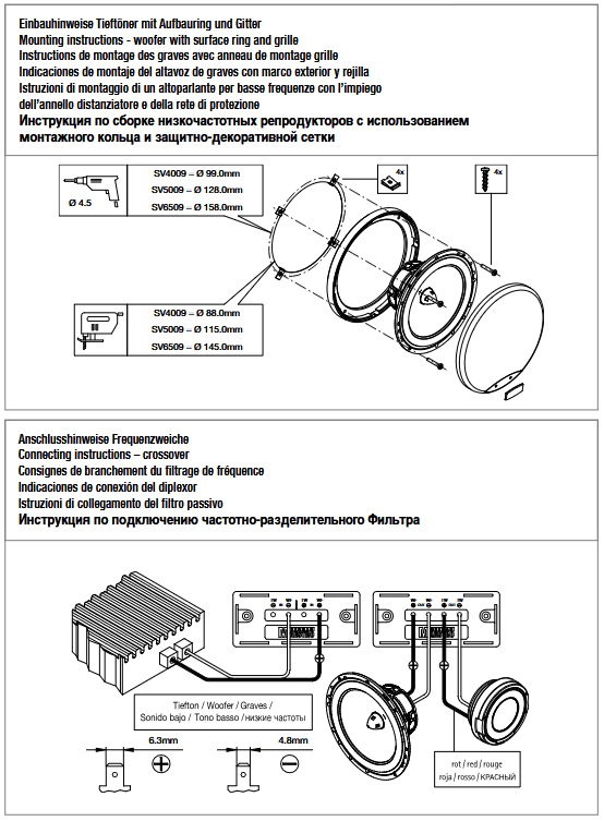 - For tweeter mounting and installation rings; For basses, cover grille and other mounting accessories included in delivery.