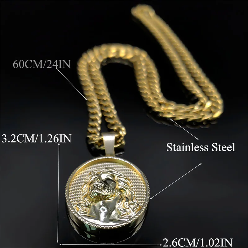 New Arrivals Hip-Hop Stainless-Steel Christ Gold Color Medal Pendant Religious Necklaces Jewelry