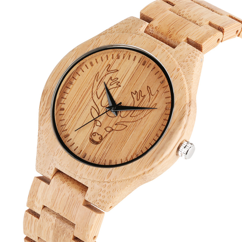 The watch is made from natural bamboo and is wrapped by hand, so it may have some natural harsh lines and a few blemishes.