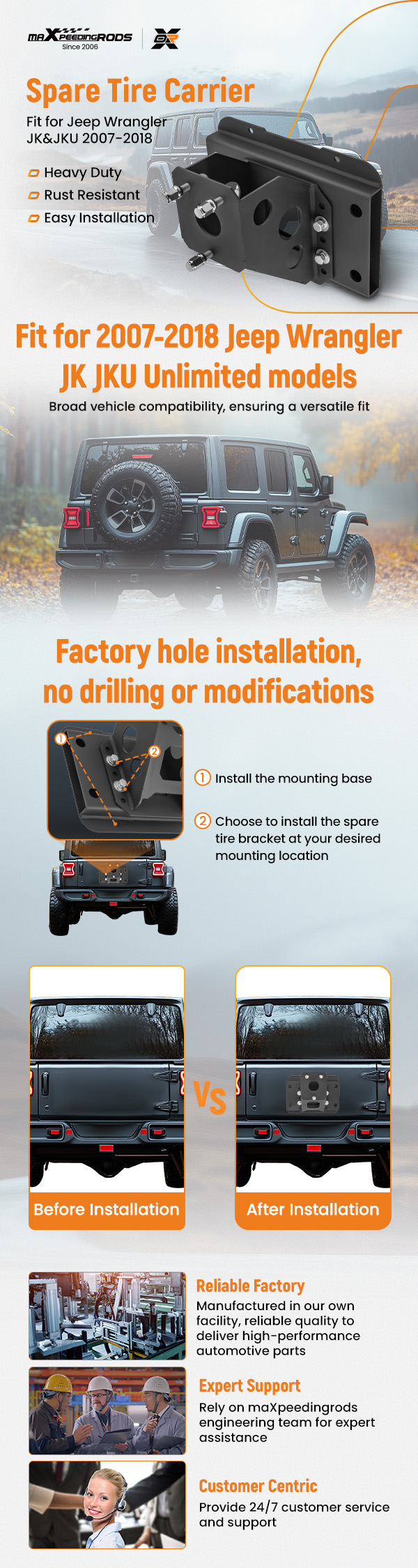 Spare Tire Carrier for Jeep Wrangler JK JKU Unlimited Adjustable 2007-2018 USA