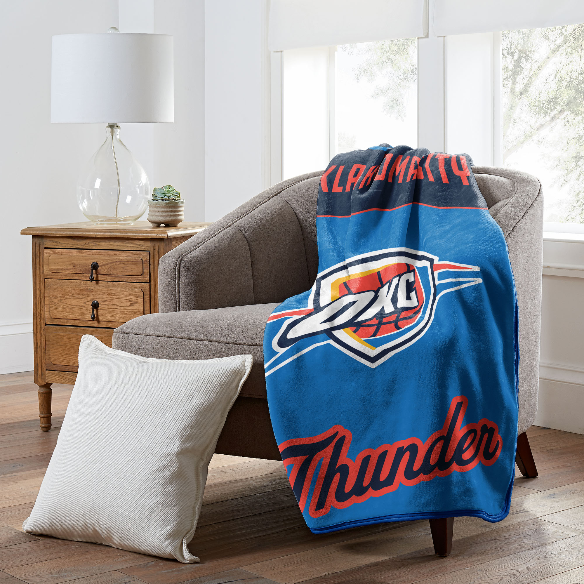 Show your team spirit with our Officially Licensed NBA Oklahoma City Thunder 46" x 60" Microfiber Throw Blanket from Northwest. Made with ultra soft Polyester microfiber for the greatest comfort while you watch the game on the TV, or to keep you warm in the stands at the game.