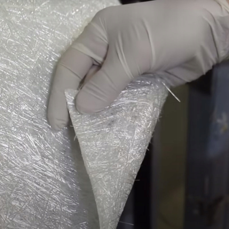 Vorbereitung der Glasmatte: Bereiten Sie ein geeignetes Stück Glasmatte so vor, dass die Matte mindestens 2 cm über die Grenze des beschädigten Bereichs hinaus überlappt.