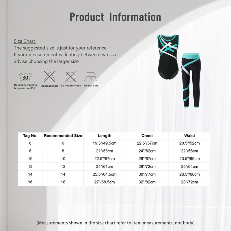 | Tag No. | Recommended Size | Leotard Length | Chest | Leotard Waist | Leggings Waist | Leggings Length | Hip |