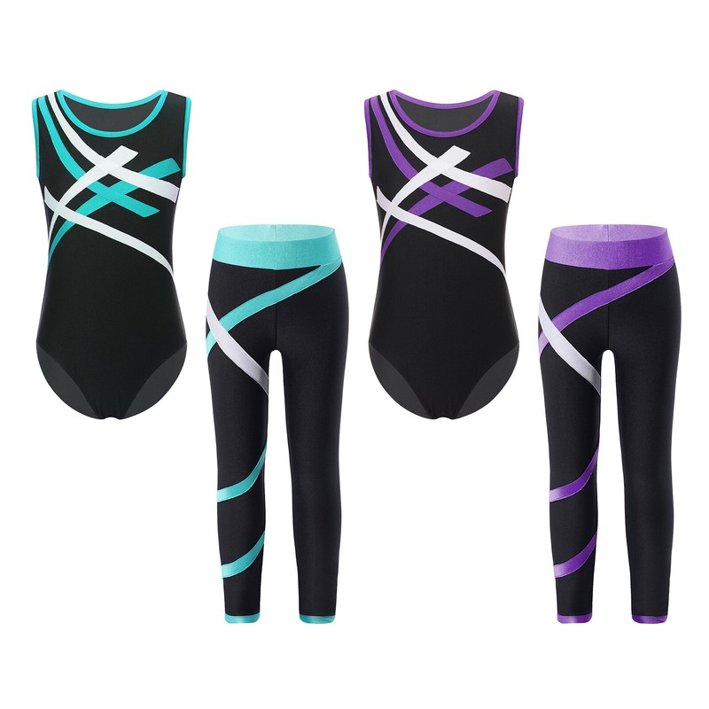 The sleeveless gymnastics leotard ensures total movement and flexibility when leaping, dancing or tumbling. pair with colorblock leggings.