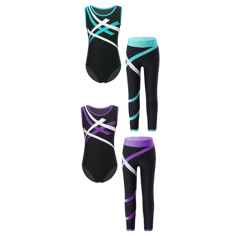 Round neck sleeveless gymnastics leotard for children, contrast color and patchwork design makes your child look stylish and energetic.