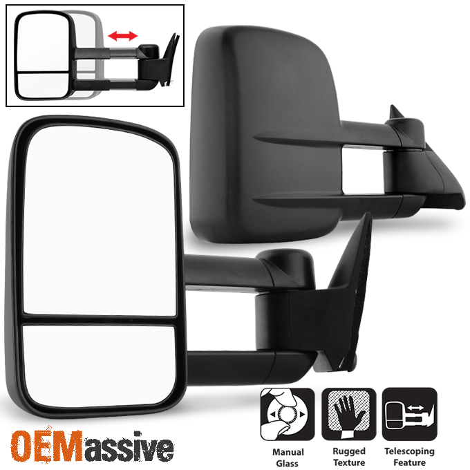 Manual Adjustable Extendable Towing Telescoping Wide Angle Side Mirror w/Convex Mirror Glass On The Bottom, No Defrost Heated Function