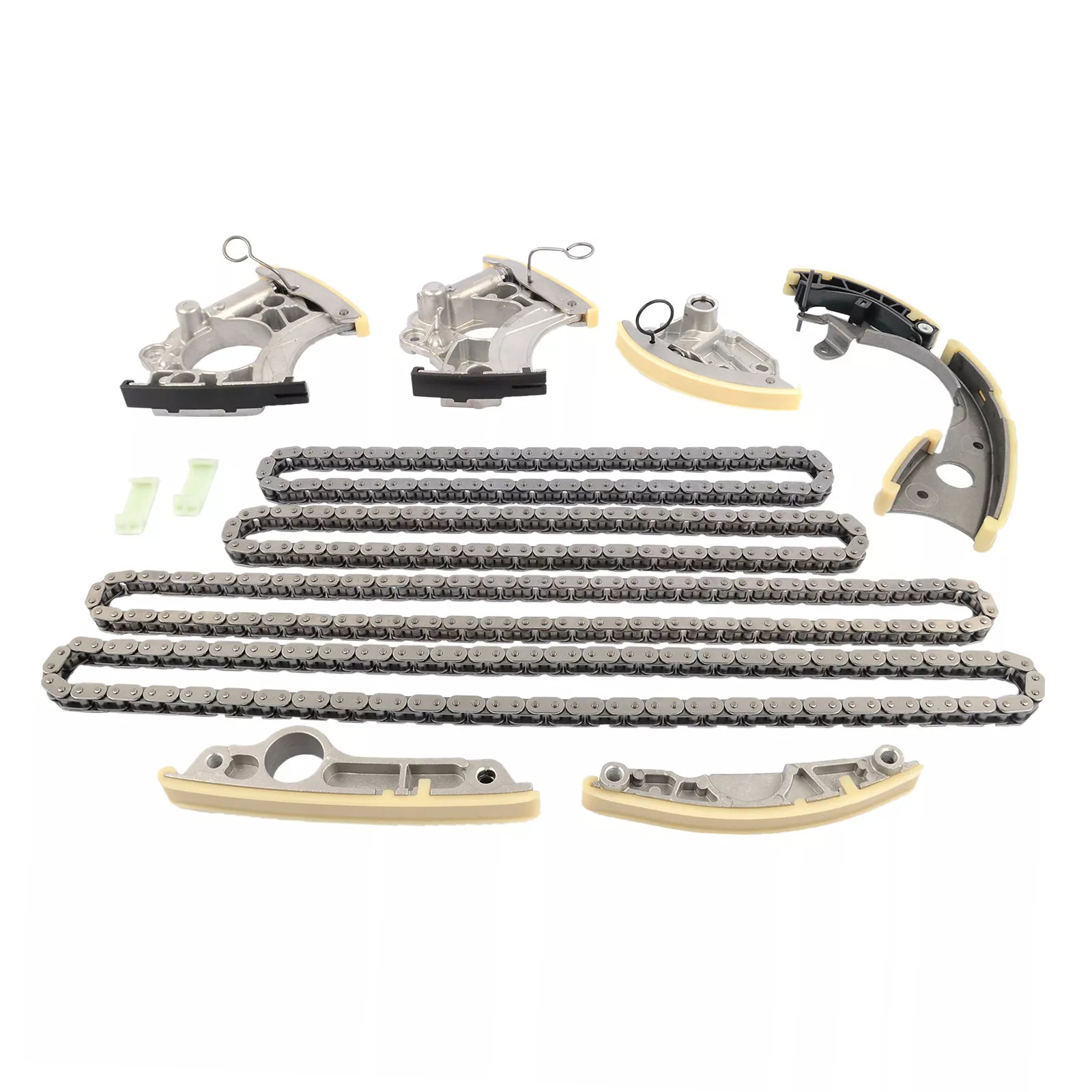 Feature: 1) Direct replacement, NOT require any modification. 2) Easy to install. 3) High quality material and complete assembly. 4) Durable and built to las Part Number: 079 109 470 06E109217Q 06E109218T 06E109465AT 06E109465BC 06E109465AS 06E109465 079109507AK 079109469AM 079109469AL 06E109507D Fit: VW Touareg 2011--2018 3.0T CGEA,CGFA,CJTA,CYJA Audi A4/Avant 2009-2015 3.0T CCBA,CGWC,CMUA,CGXC,CTUB A4/S4/Avant 2009--2015 A5/S5 Cabriolet 2010--2017 3.0T CAKA,CCBA,CGWC,CMUA,CGXC,CTUB A5/S5 Coupe/Sportback 2012--2016 3.0T CGWC,CMUA,CGXC,CTUB,CHMB A6/Avant 2009-2014 3.0T CAJA,CCAA,CGWB,CGXB,CGWD,CTUA A6/S6/Avant quattro 2009--2014 A7 Sportback 2011-2014 3.0T CGWB,CGXB,CGWD,CHMA,CTUA,CTTA A8/S8 quattro 2010--2013 3.0T CGWA,CGXC,CMDA,CTUB,CGWD Q7 2010--2015 3.0T CJTC,CJTB,CNAA,CJWB,CJWC,CJWE,CTWA,CTWB Q5 2013--2017 3.0T CTVA,CTUC,CTXA,CTUD Porsche Cayenne 92A 3.0T (gasoline) CGE/CGF/CJT Panamera 970 2010--2016 Please Compare The Part Number With Your Original One Before Purchasing! Package Include: 1 x Chain Top Left 1 x Chain Top Right 1 x Chain Center 1 x Chain Lower 1 x Tensioner Top Left 1 x Tensioner Top Right 1 x Tensioner Center 1 x Tensioner Lower 1 x Guide Rail Center Top 1 x Guide Rail Center Left 2 x Guide Rail Left&Right