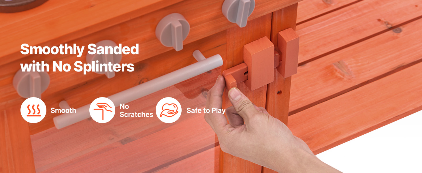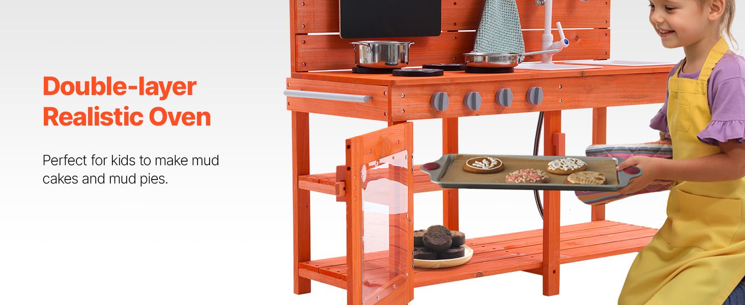 This imaginative toddler play kitchen is treated with outdoor-grade paint for water and corrosion resistance, making it ideal for outdoor environments like gardens, backyards, and lawns.
