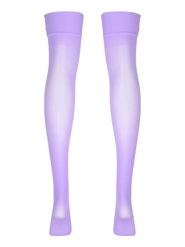 Womens Glossy See-through Stockings Thin Shiny Solid Color Elastic Sheer Thigh High Socks.