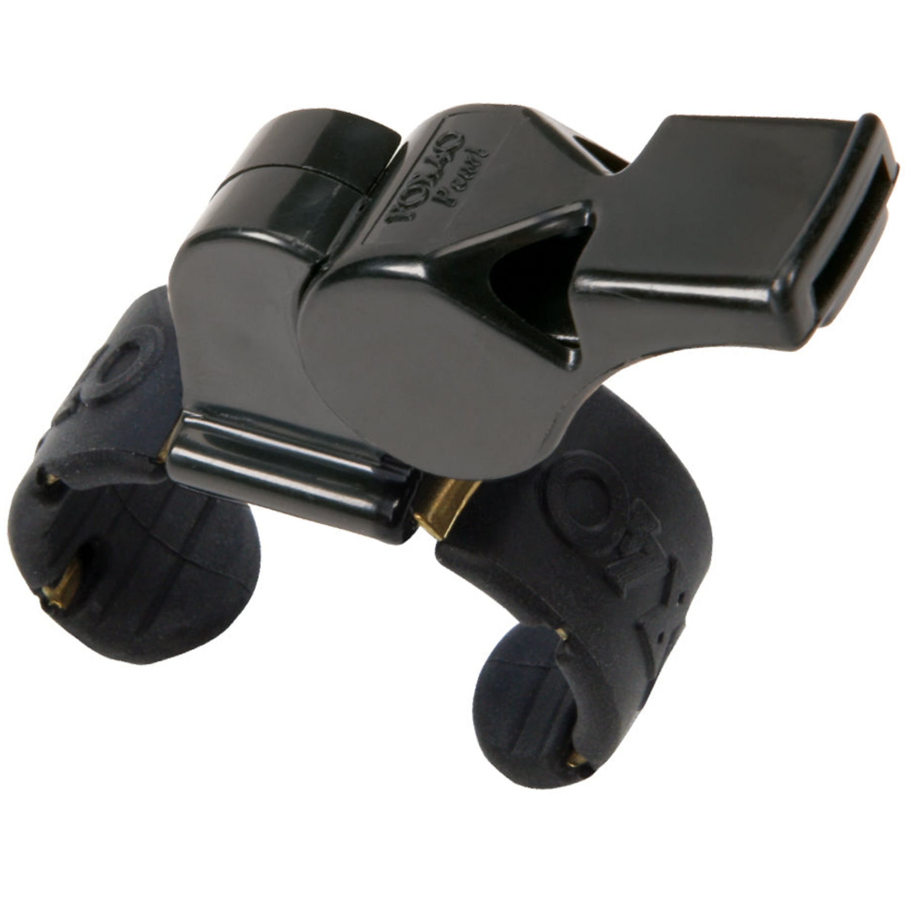 A patented two-chamber pealess whistle, with a low-pitched tone, is a favorite with multi-sport referees and coaches. Fingergrip attached to whistle for easier handling.