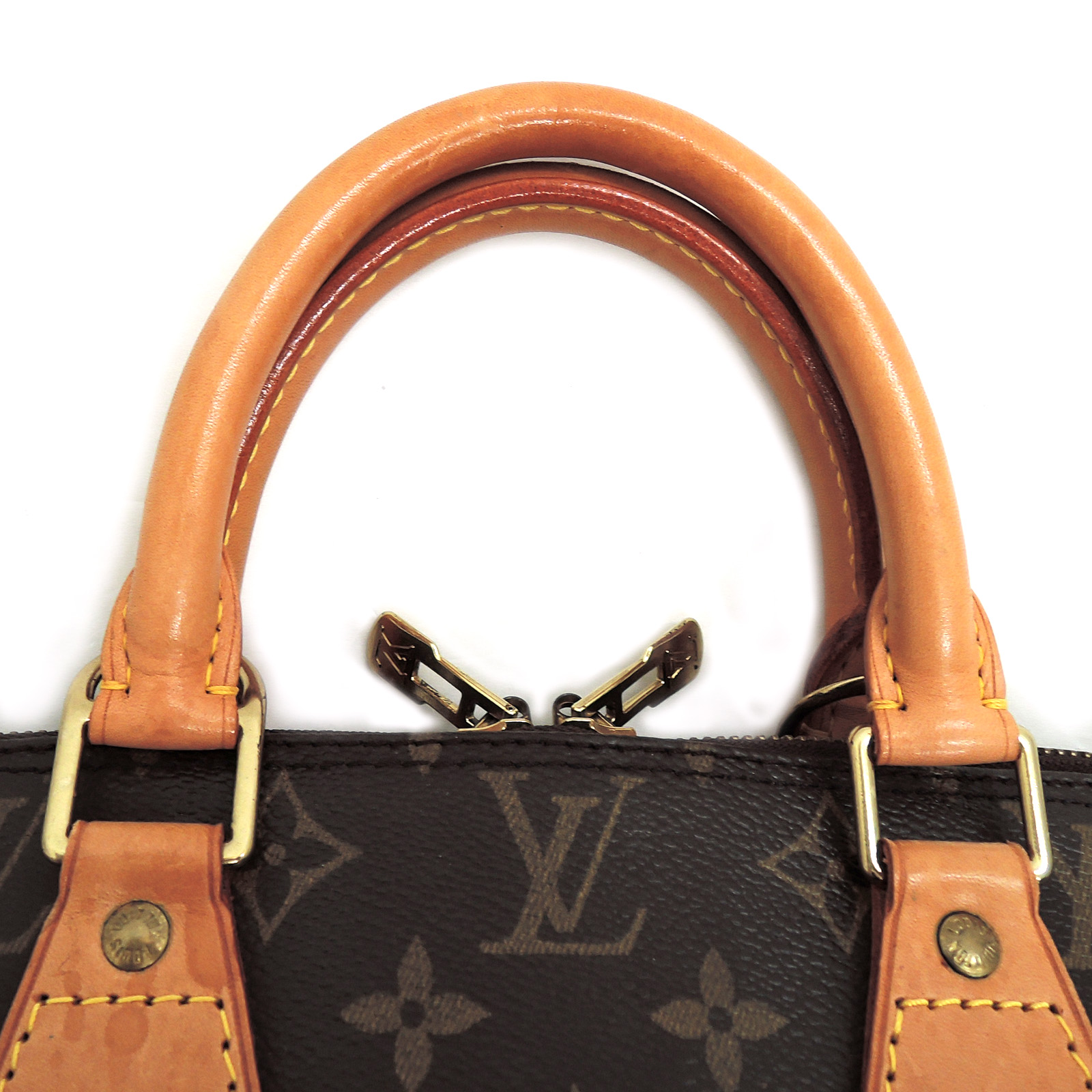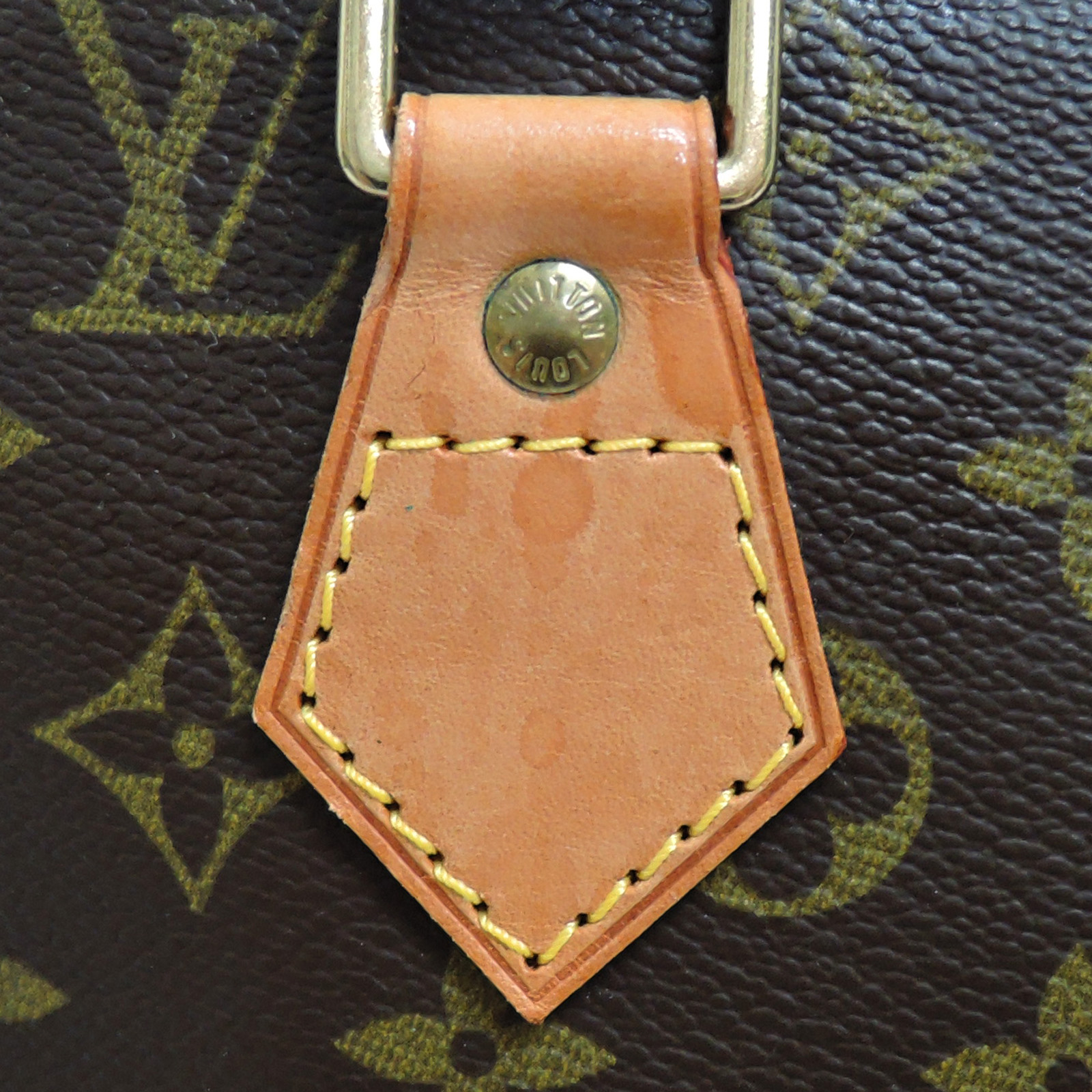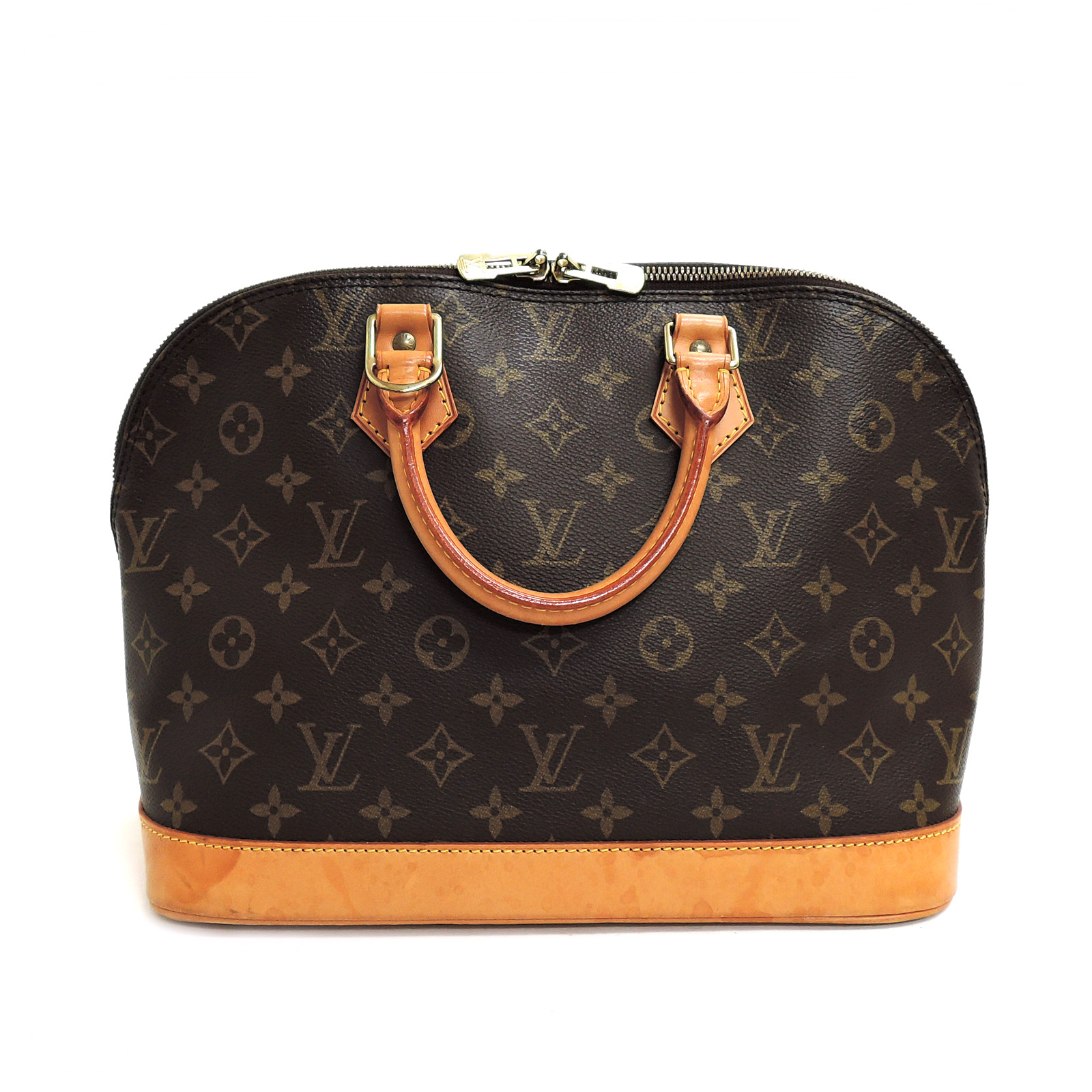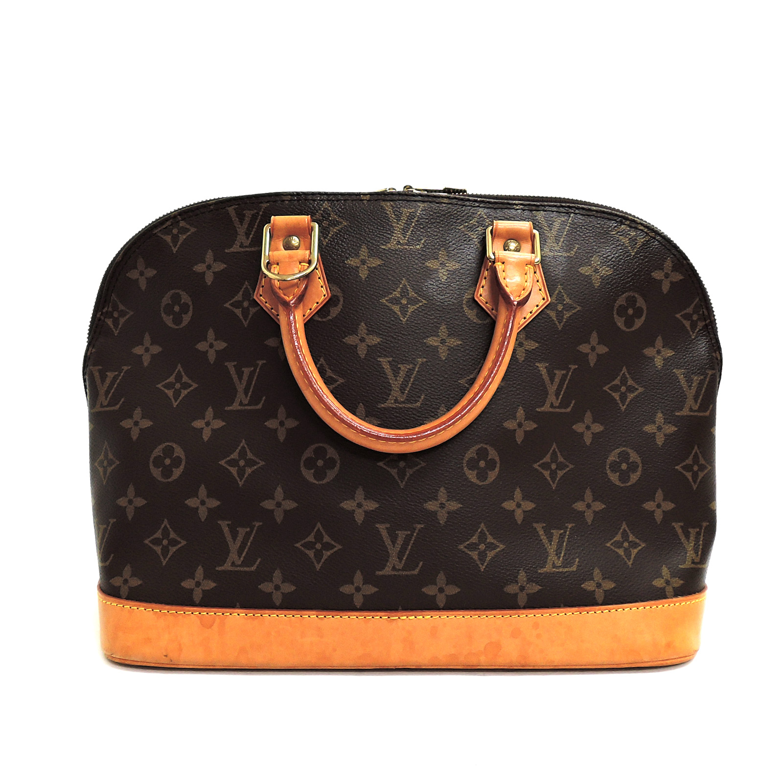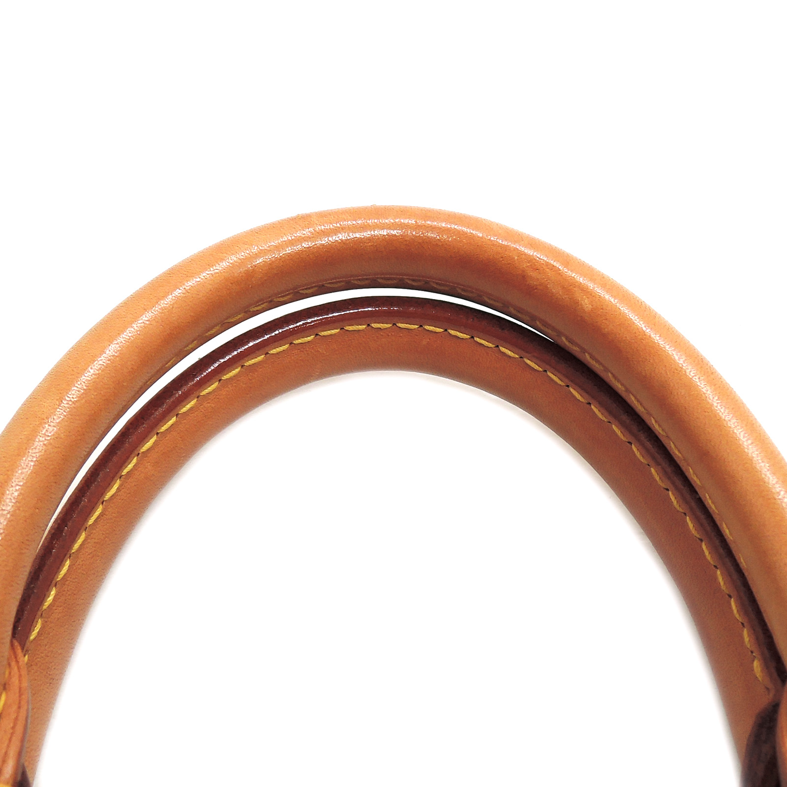 Supplement : The used bag is in good condition. There is no major problem on the inside liner. The light brown leather area has water spots. The handles have a noticeable used appearance. The corners of the bag are worn out due to usage. Please check the details in the pictures.