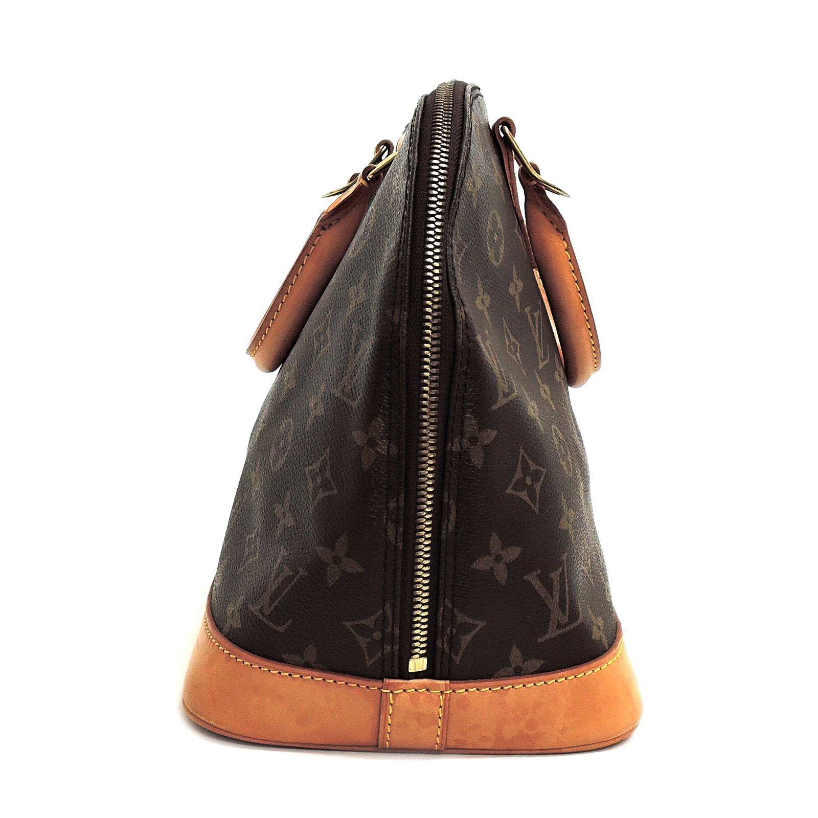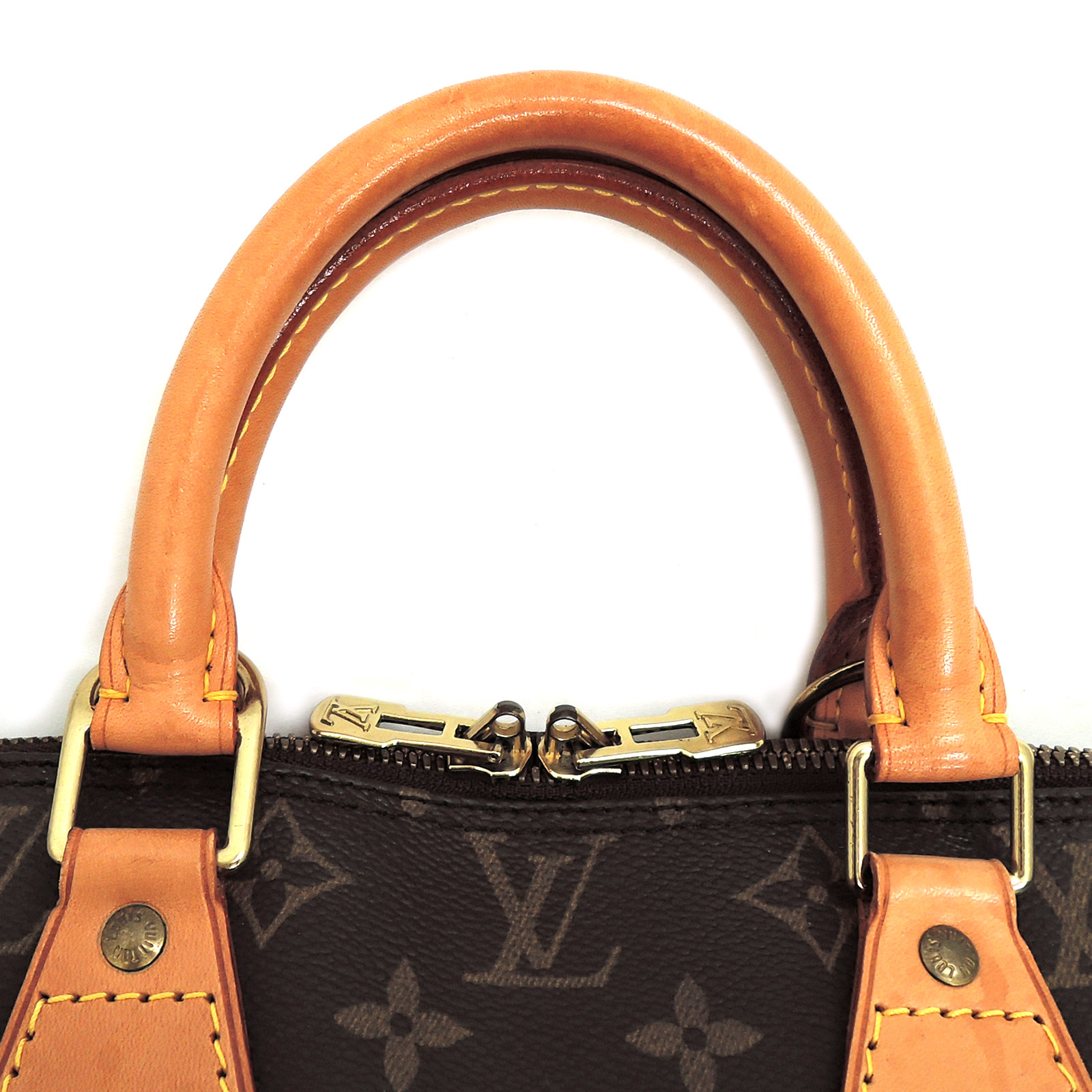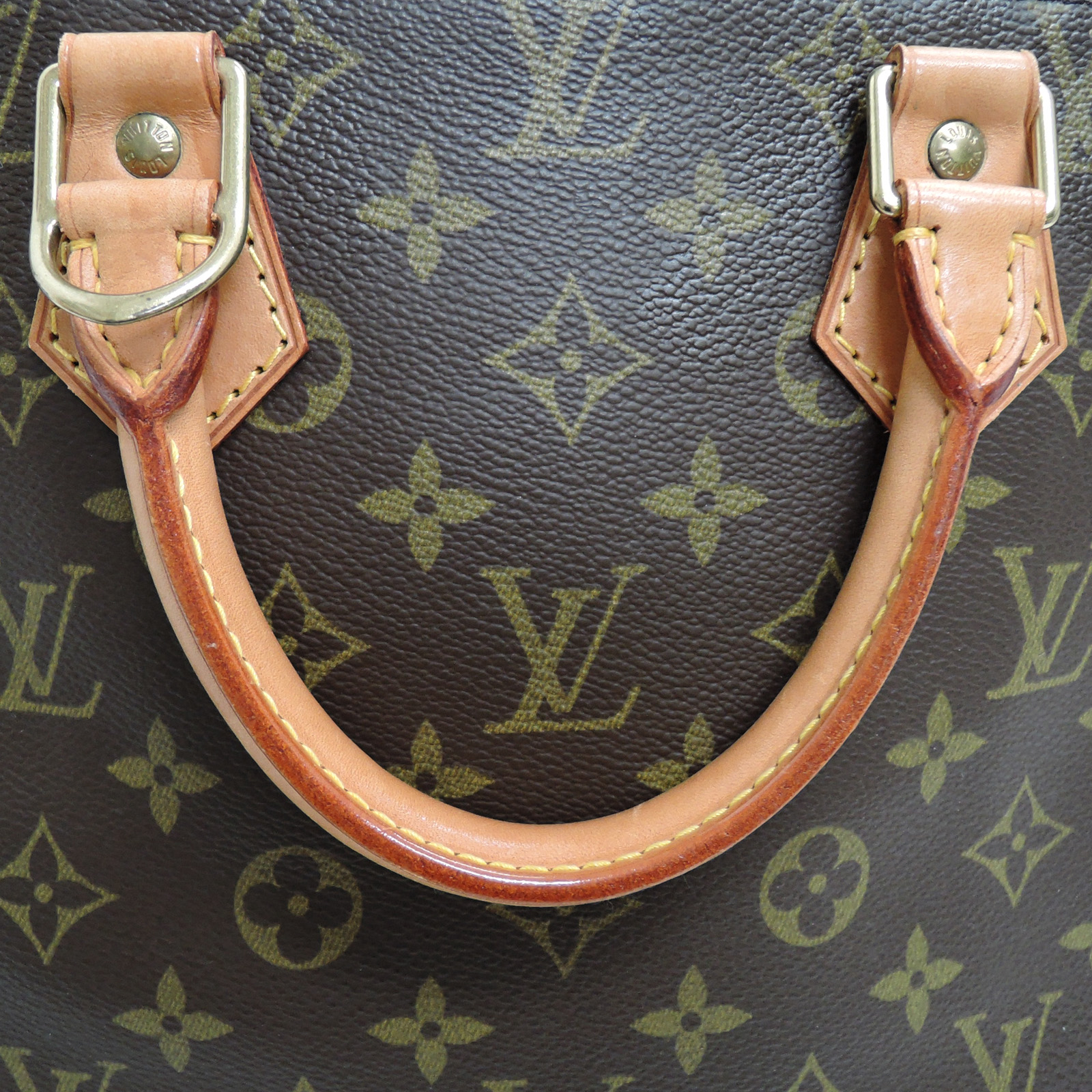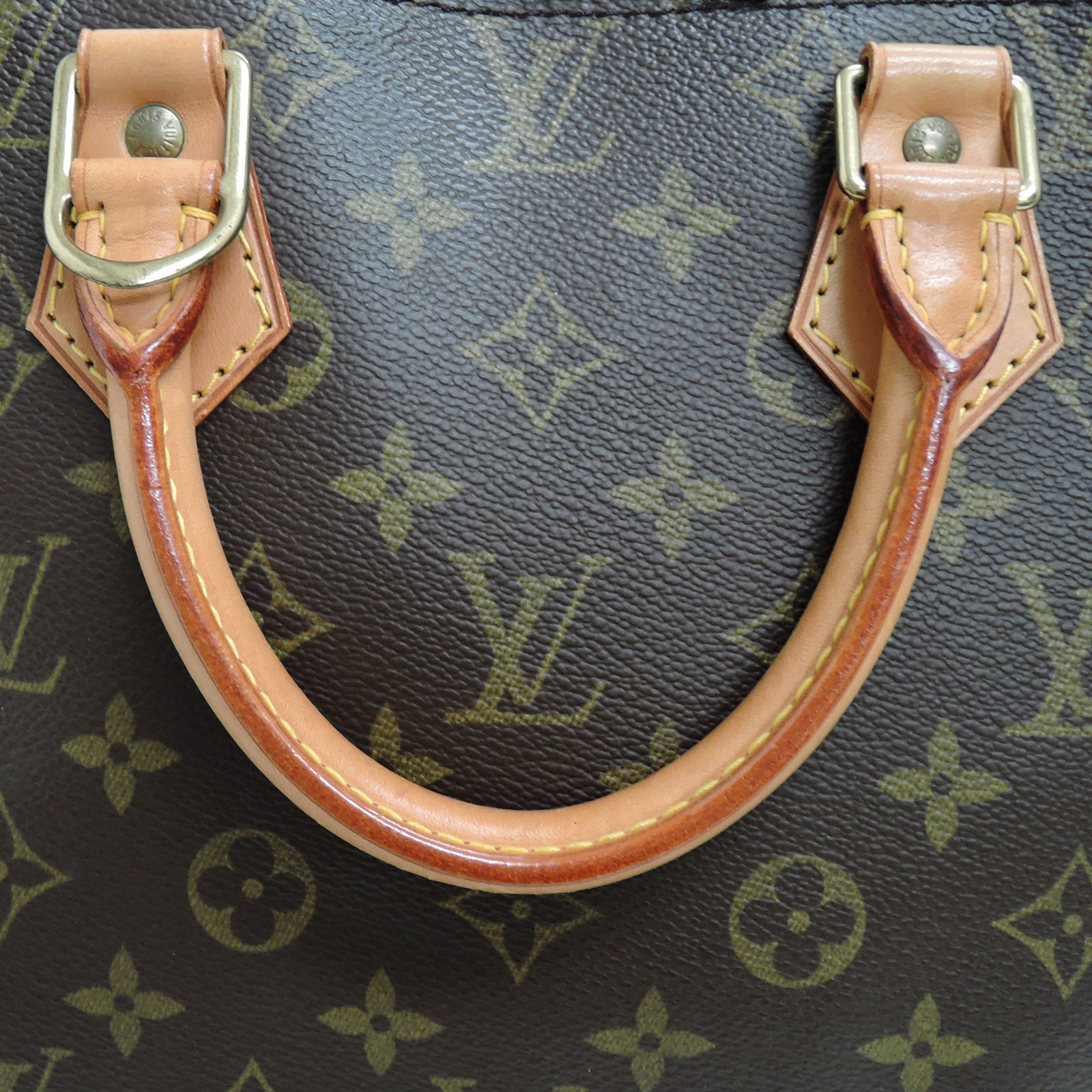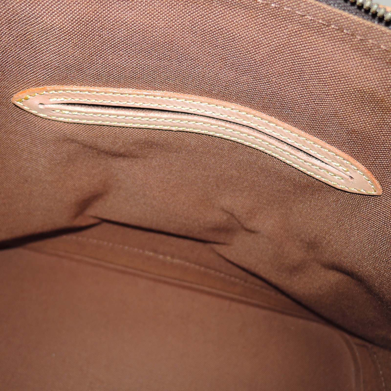 Supplement : The used bag is in good condition. There is no major problem on the inside liner. The light brown leather area has water spots. The handles have a noticeable used appearance. The corners of the bag are worn out due to usage. Please check the details in the pictures.