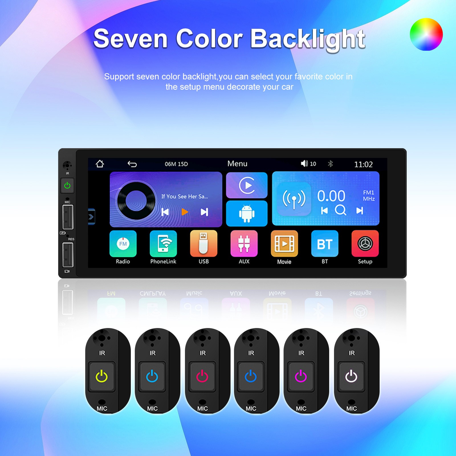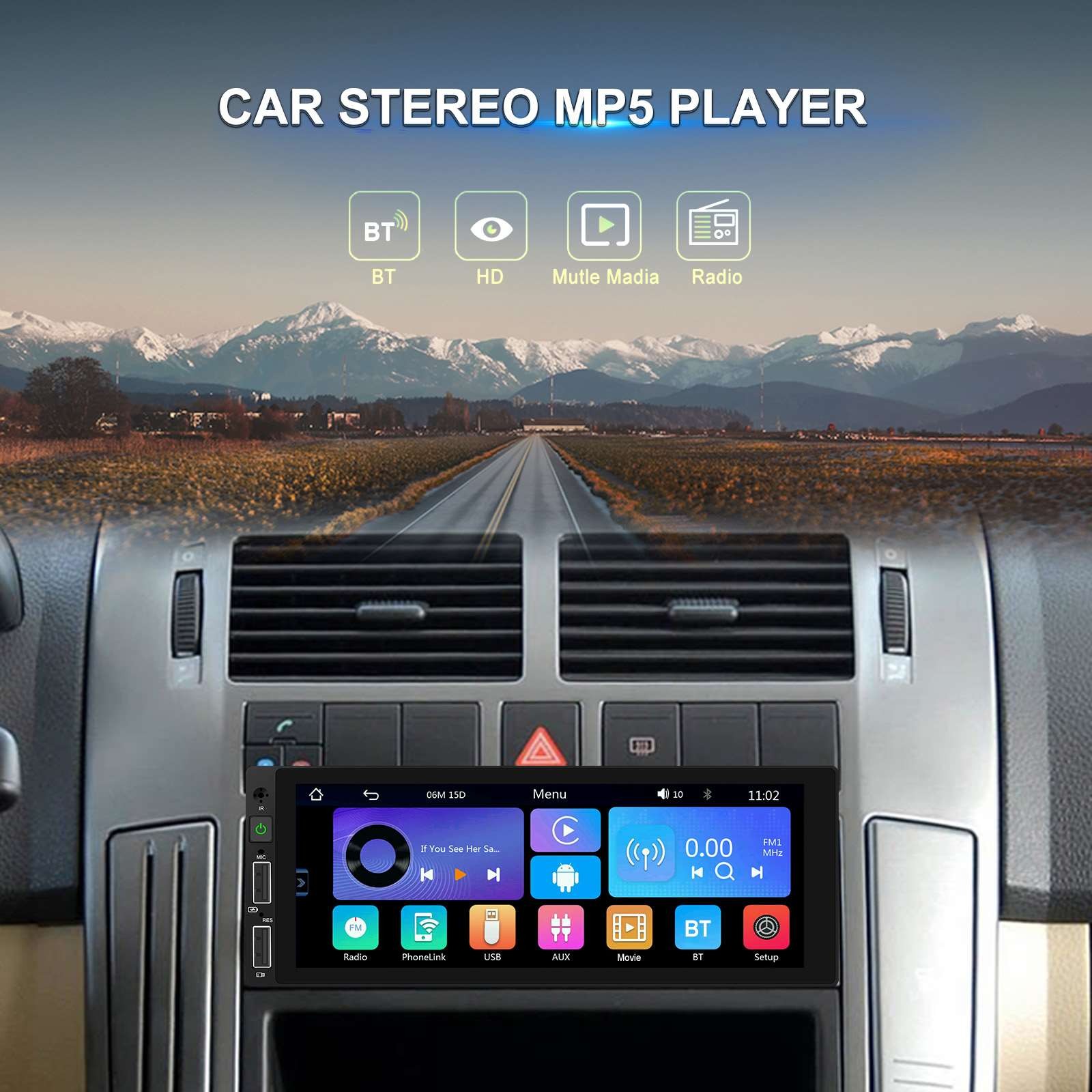 ● Mirror Link: Support Android/ Iphone Mirror Link through phone's original USB line synchronized to the on-board screen.