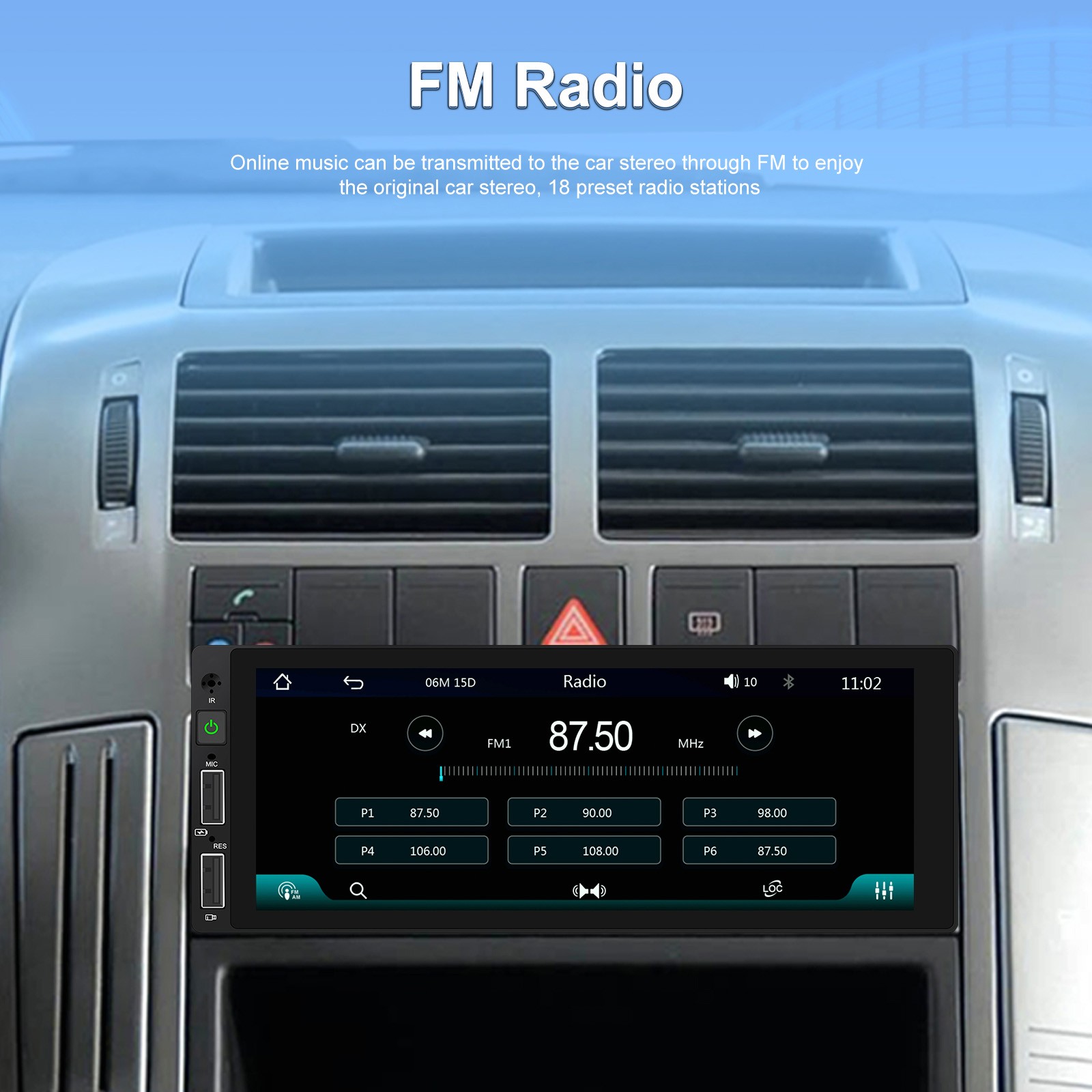 ● FM radio with high-quality stereo, which can search channels in full-automatic ways,semiautomatic way and acurate adjustment way;Listen to music, newsletters and traffic information anytime, anywhere.