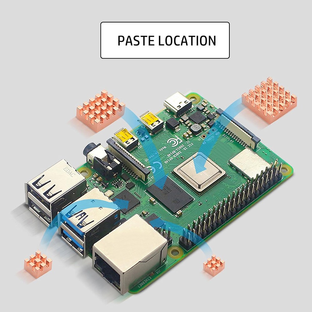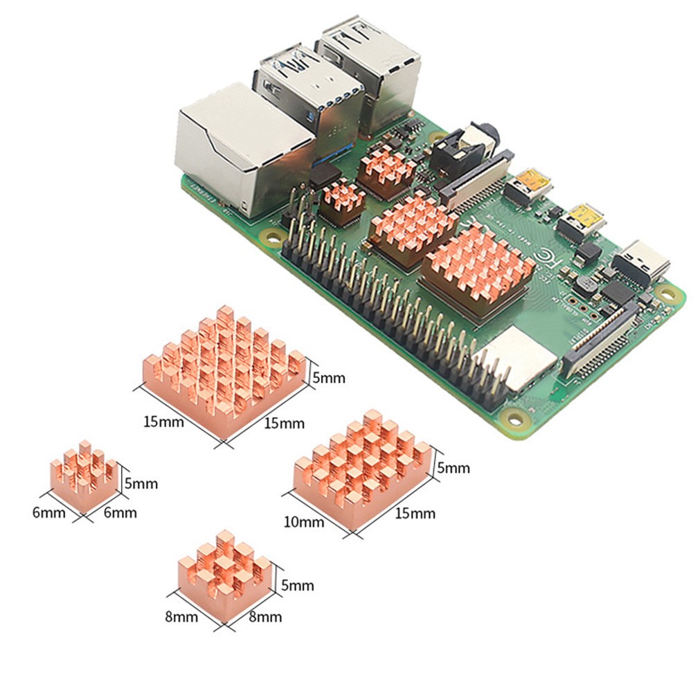 * Robustes Design: Hergestellt aus reinem Kupfer, sind diese Kühlkörper langlebig und bieten eine hervorragende Wärmeableitung für HIMBEERE Pi-Modelle mit unterschiedlichen Speicherkonfigurationen.