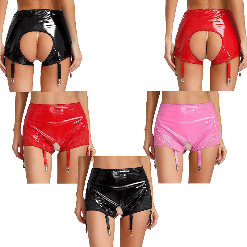 Opening crotch design bringing endlessly flirty and frees from taking off. Great to match with stockings.