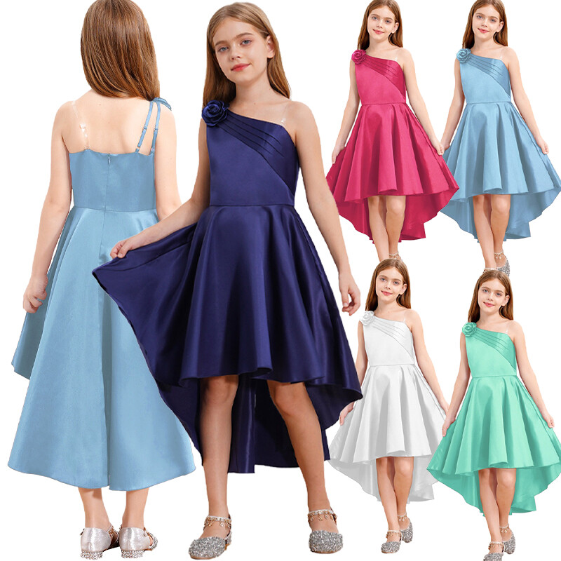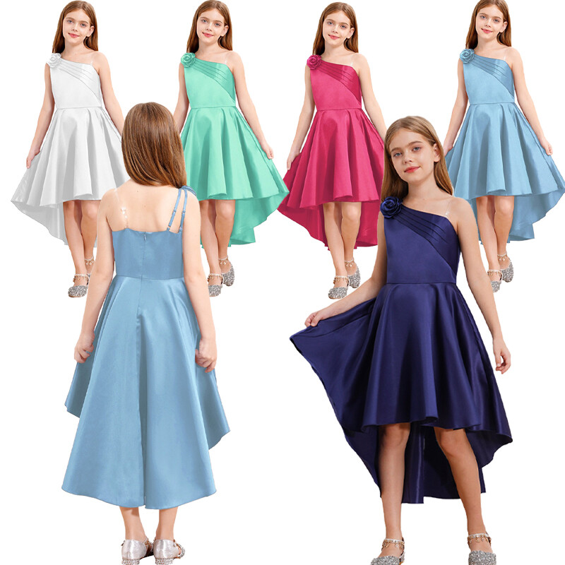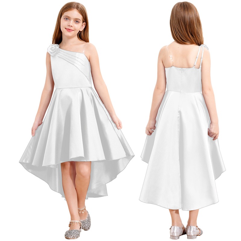 Adjustable spaghetti straps, detachable fake flowers and ruffled design, irregular hemline, which is unique and chic.