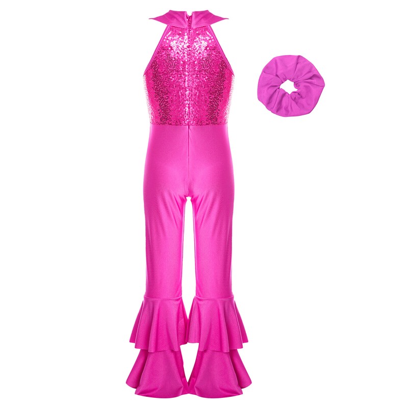 The leotard with sleeveless and turndown collar, shiny sequins decorated. Pair with a hair band.