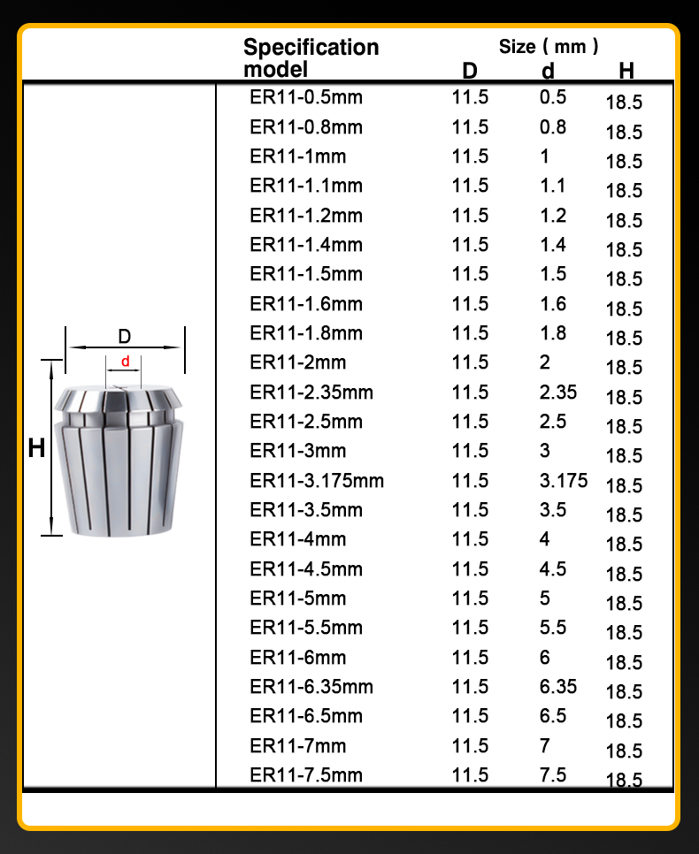ER Collet Chuck ER11 collet chuck Accurancy 0.008mm AA 0.8-8mm er11 Collet Chuck Bracket Tool Milling Cutter Tool Holder