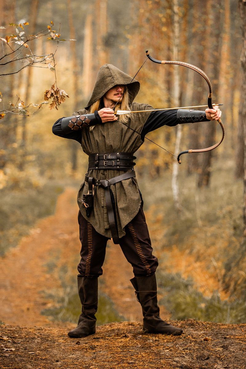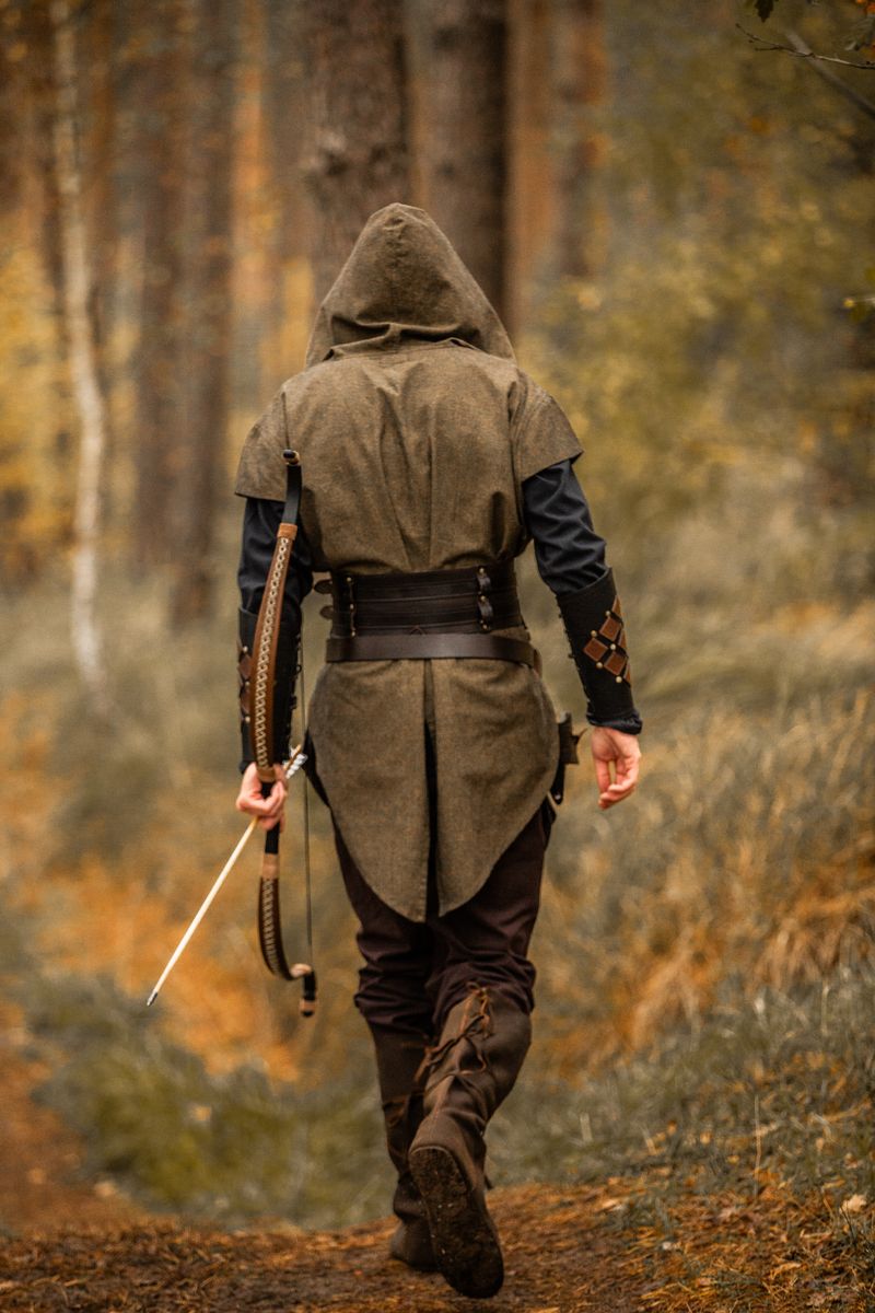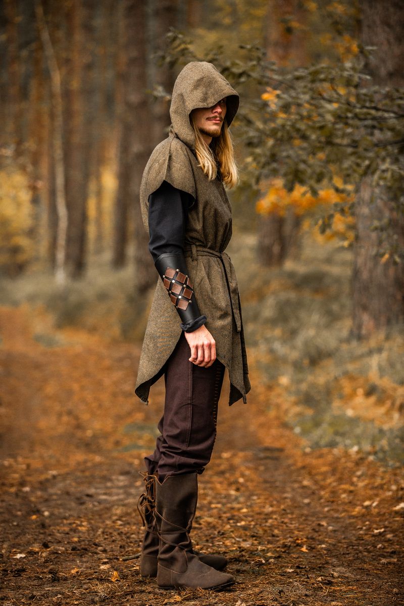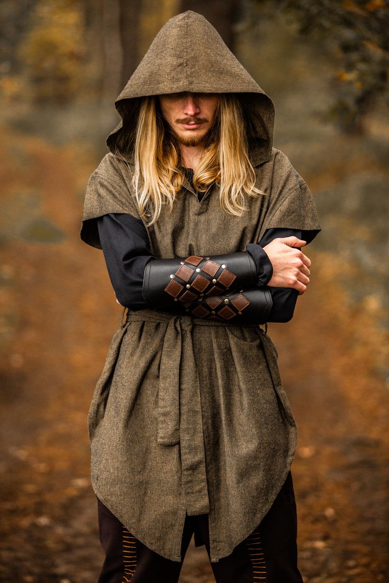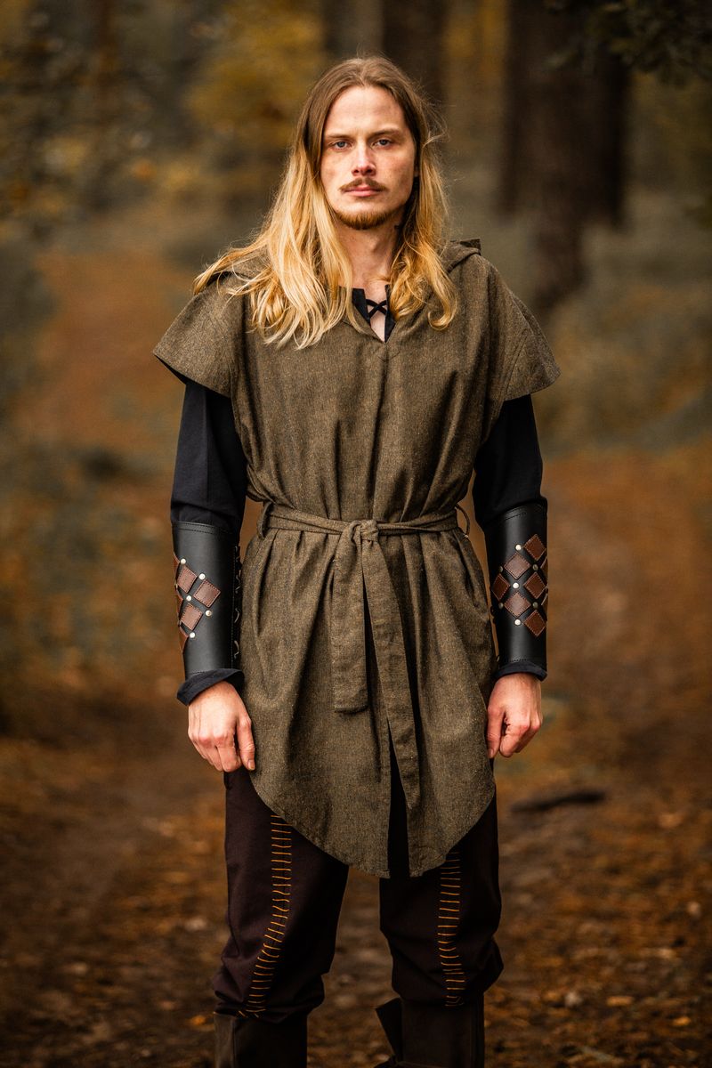 Kapuze und V-Ausschnitt: Bieten nicht nur Schutz, sondern verleihen der Tunika auch einen markanten, mittelalterlichen Look.