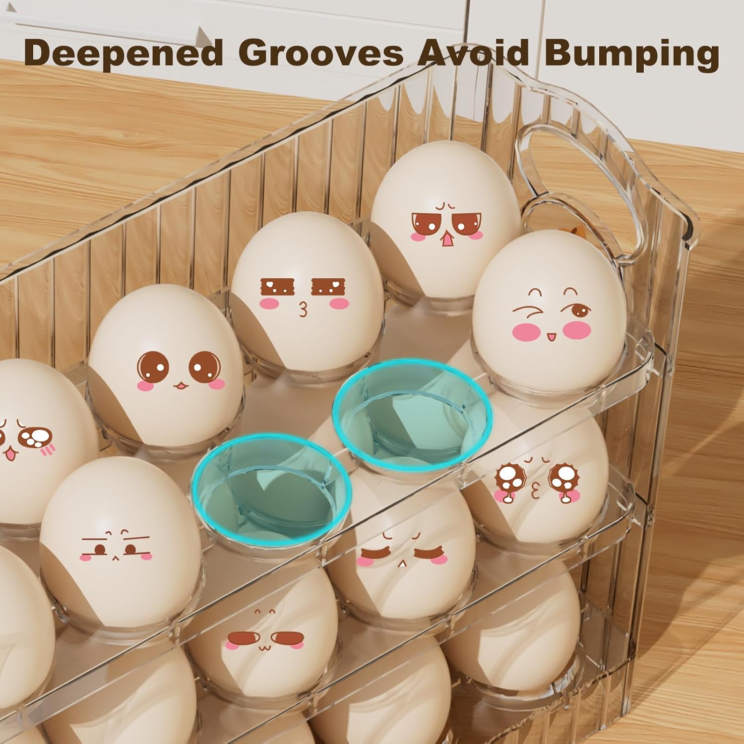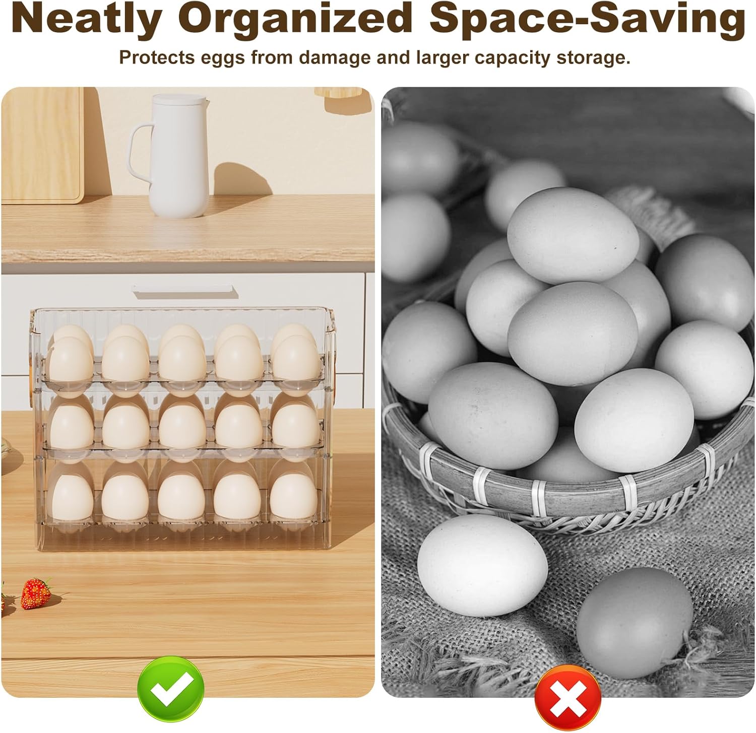【Save Space】 Our 3-tier large capacity egg storage for refrigerator can store about 30 eggs. Keeps otherwise cluttered eggs neatly organized in the egg container. Its compact size optimizes the space in the refrigerator or kitchen countertop without taking up extra space, making life neater and more organized.