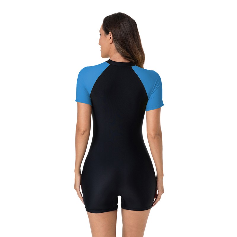 Modest style swimwear, you could decide how spicy you want to be by adjusting front zip. Slim fit and outlines your body figure.