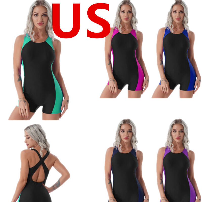 Crew neck, short sleeves, boyleg short jumpsuit swimsuit, wireless bra with removable pads provide comfy support.