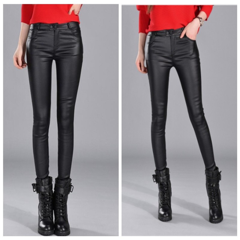 Glossy appearance patent leather skinny pants, great match with camisole, crop top, shirt, blouse.